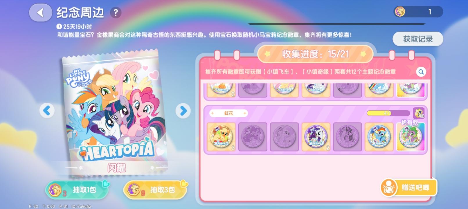 有谁缺【虹花】的 珍奇 嘛? 可用【虹花】苹果,碧琪,柔柔 三个中任意一个 换#小马宝莉吧唧互换 #小马宝莉联动 #小镇心动瞬间 #小马宝莉联动 #心动小镇