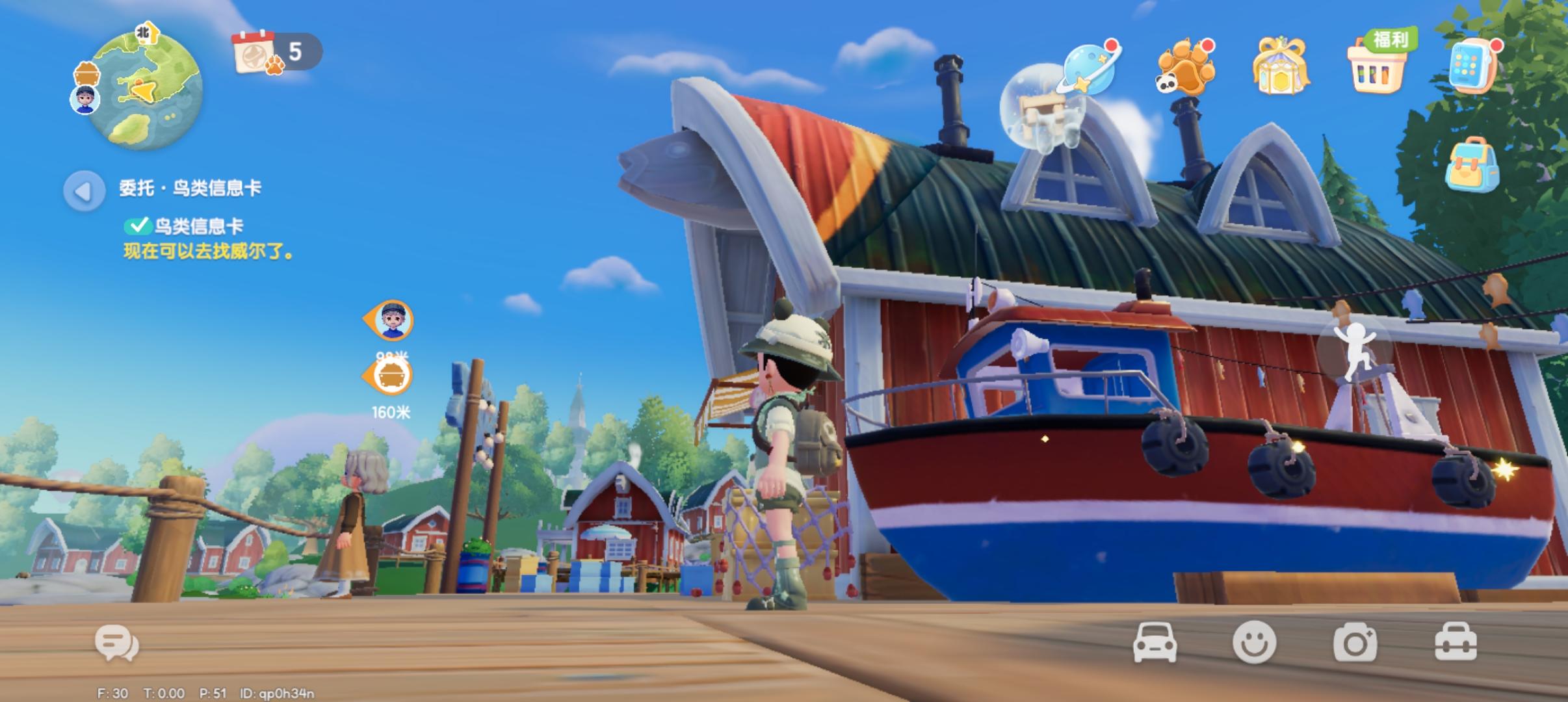 一、游戏日常: 1.萤石: 7号家园门前。 2.溜溜木:3号家园门前。 3.去服装店二楼给贝莉交鸟卡5张。 4.找小鬼抽20次卡,集金色图鉴。(需要20 万金币,量力而为) 5.兑换码:晚点评论出。 二、动物新邻季日常 1.动物香薰(第9天):红色,在森林岛布兰克摊位旁边咖啡伞上,用相机拍照即可。 2.香薰家具摆件(第9天):红色,在渔村婆婆旁边小船上。 3.到厨师处买8种食材,