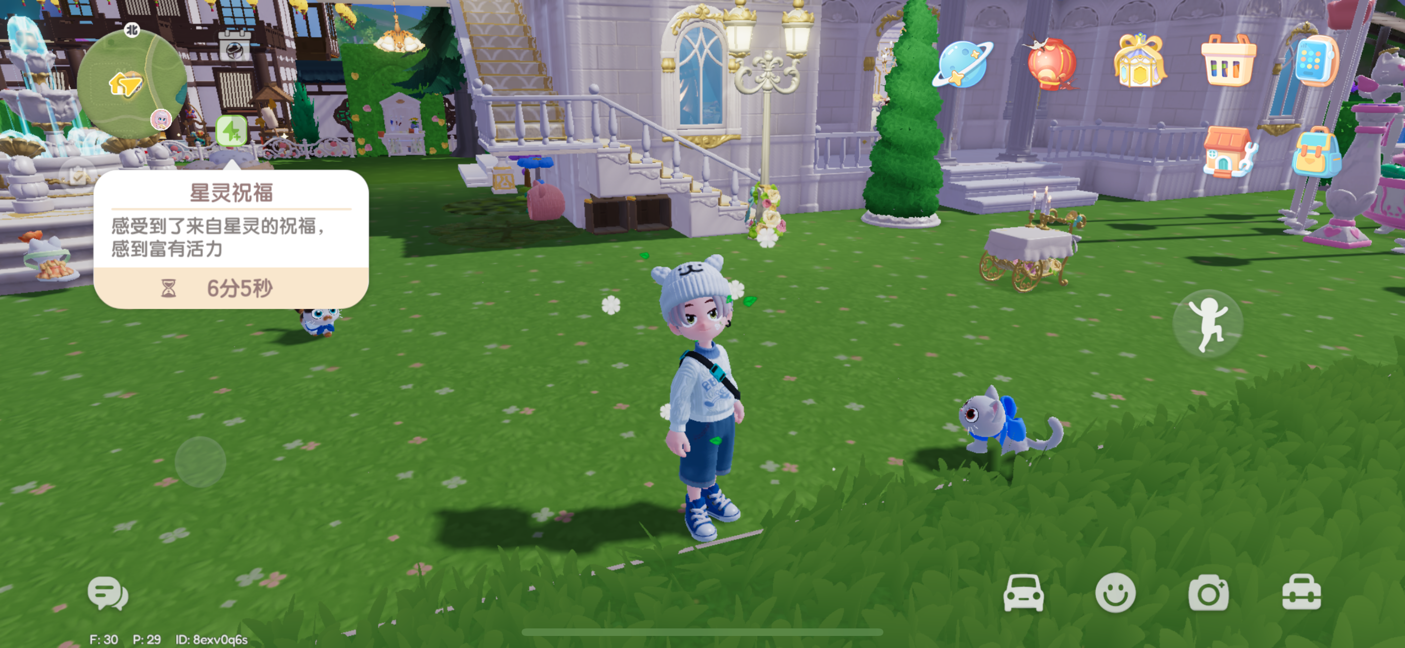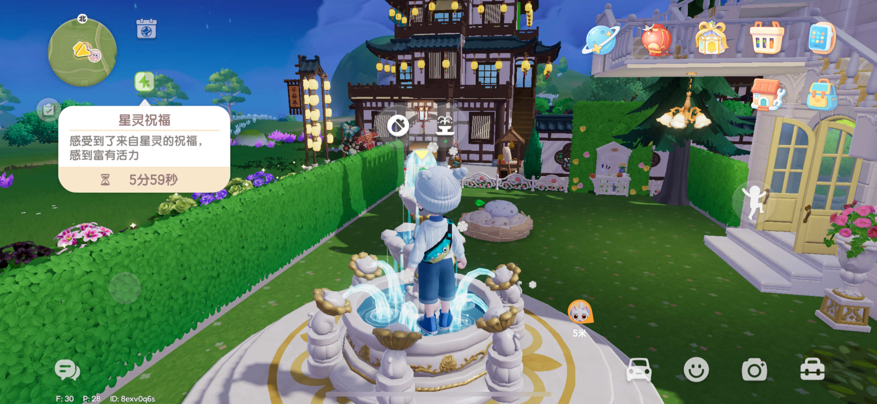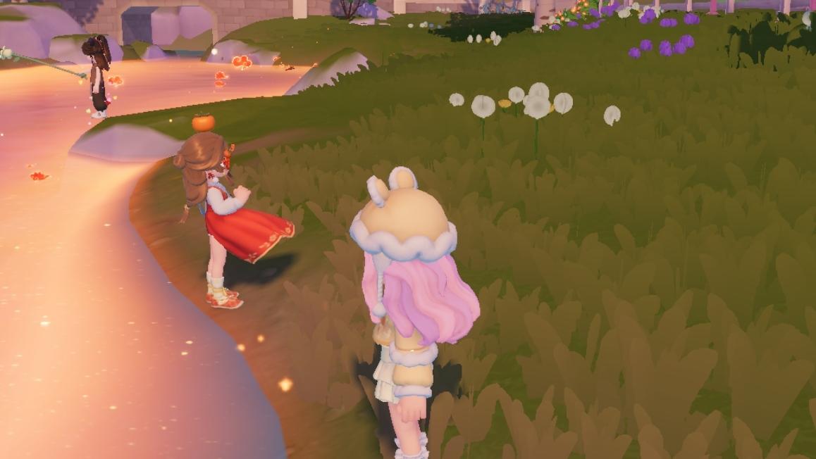 往喷泉里面投金币就能得到星灵祝福哦开心飘散的小花蛮可爱的