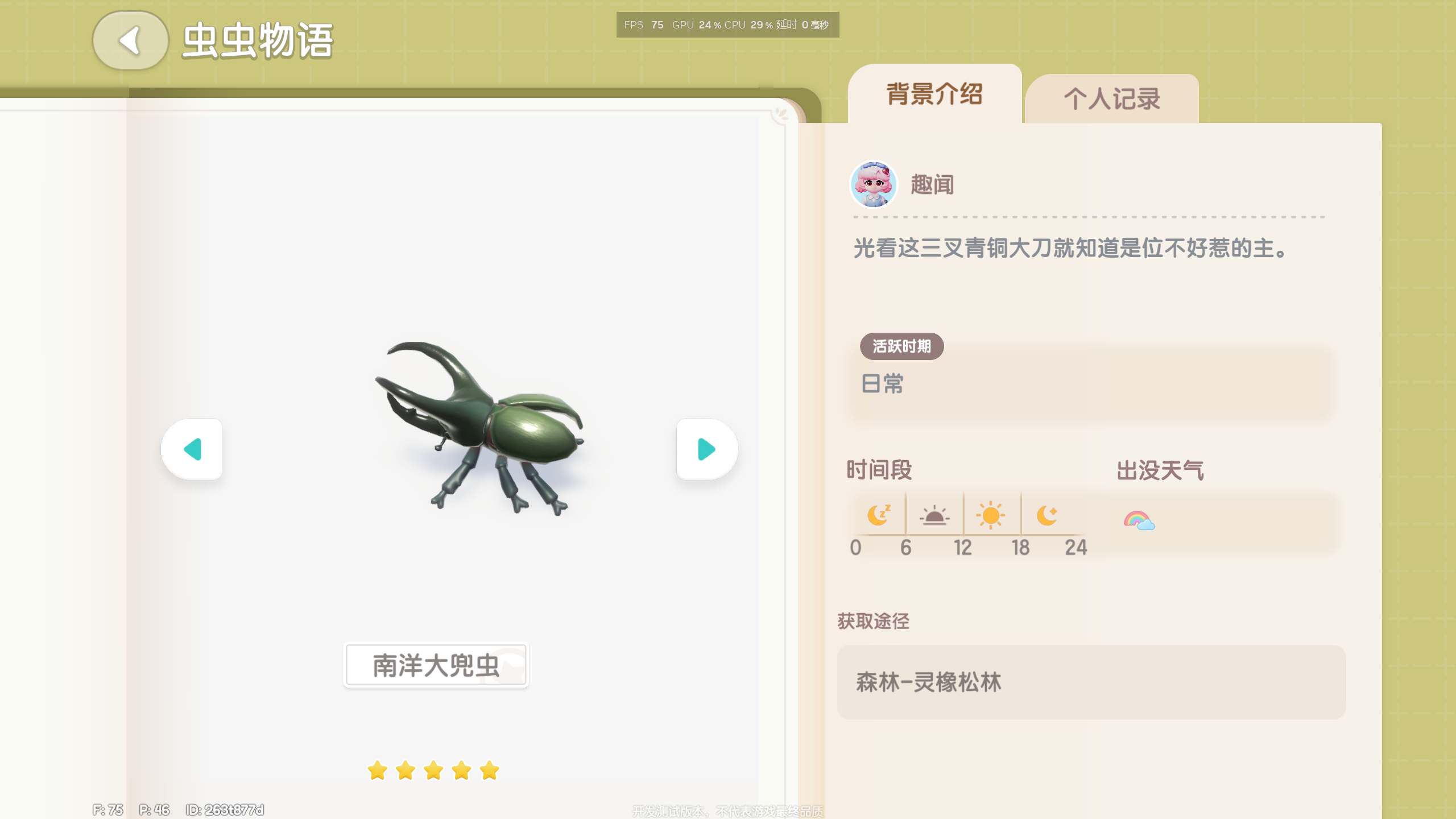 两只都挺好抓,不像日常天那两只11级虫那么敏感。南洋大兜虫第一只给4星我以为又要卡虫,祝大家好运。