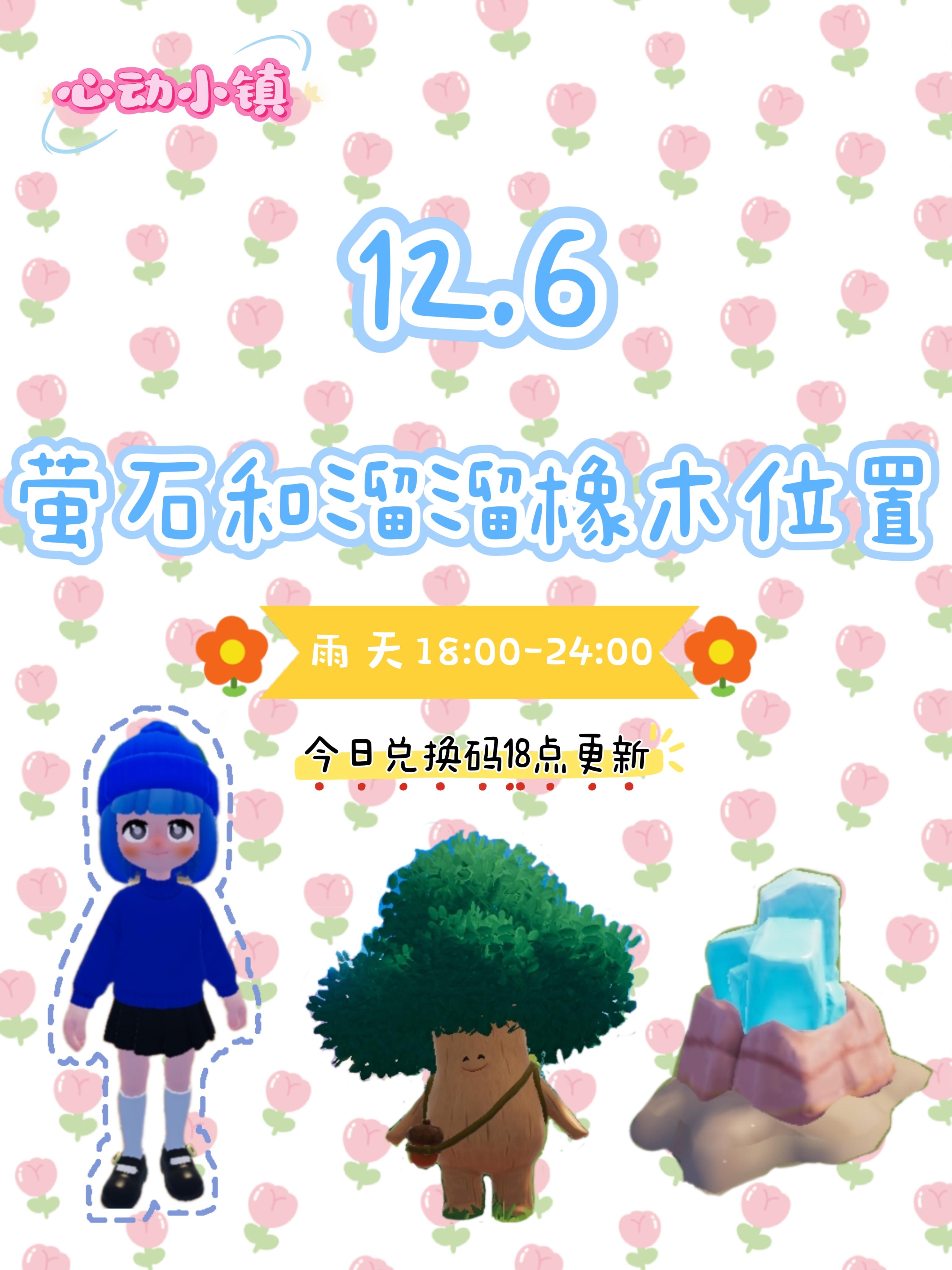 萤石、溜溜橡木:位于08号房门前雨天🌧️18:00-24:00雨天朵朵:位于中心城镇文艺街今日兑换码在评论区~(18点更新)#心动小镇 #心动小镇兑换码 #心动小镇攻略 #心动小镇无暇萤石 #心动小镇溜溜橡木 #心动小镇日常 #心动小镇下雨天