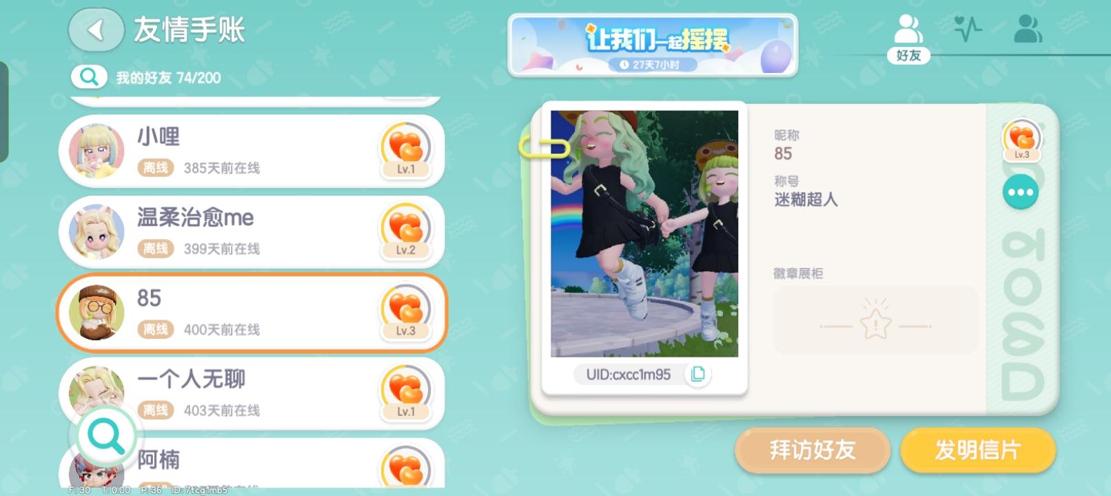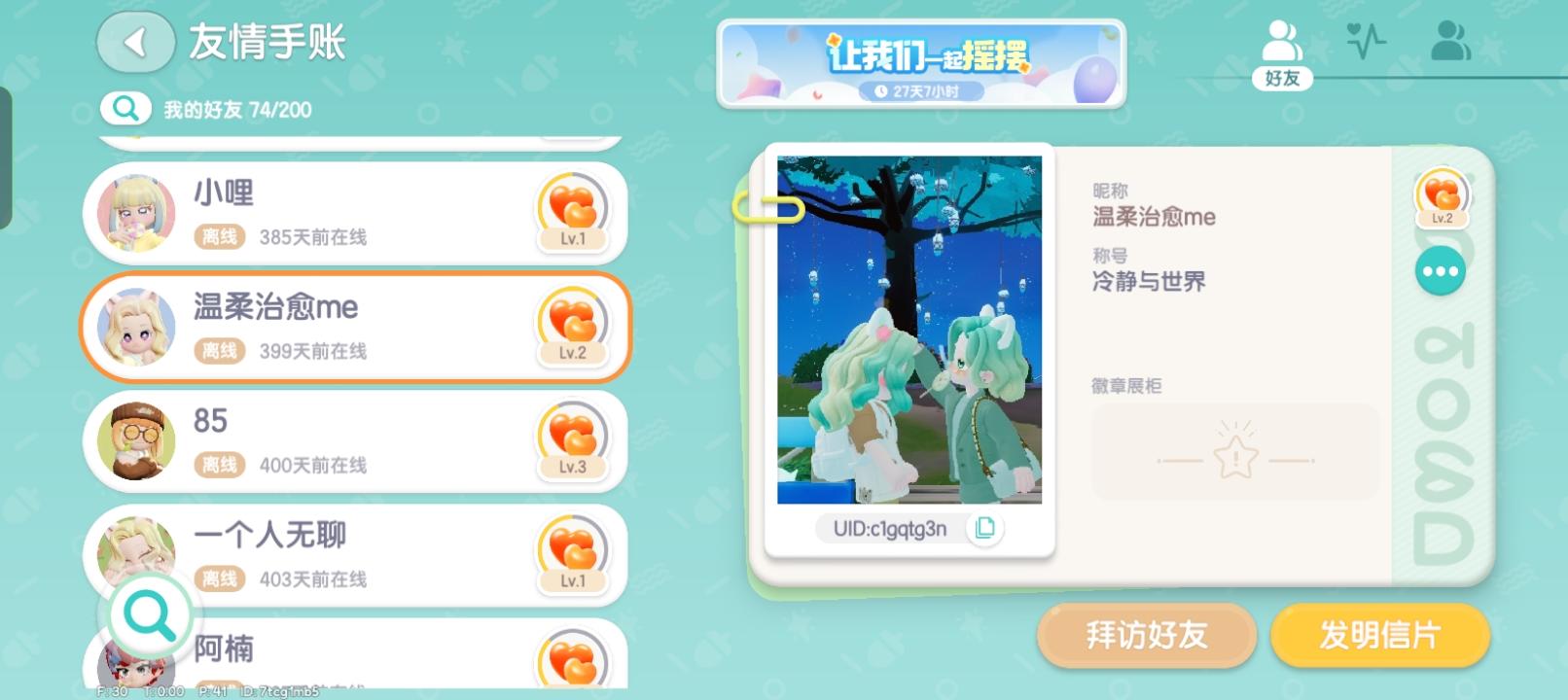 我的我的朋友们,希望你看到这条评论能回来,有的已经离开一年了,你们走后就没有人和我玩了