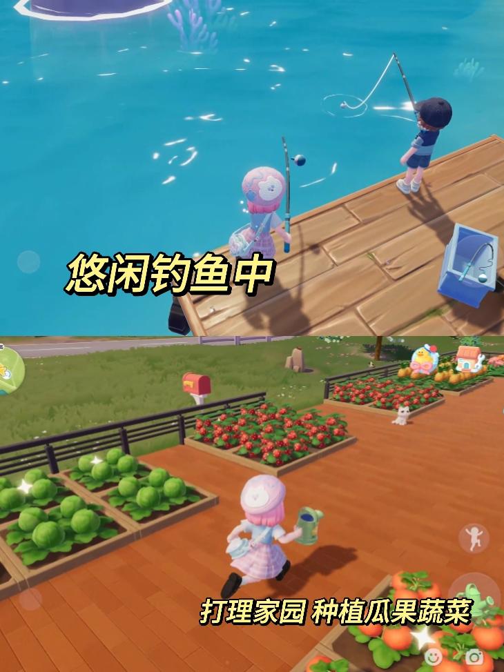 钓鱼做饭加种菜。
