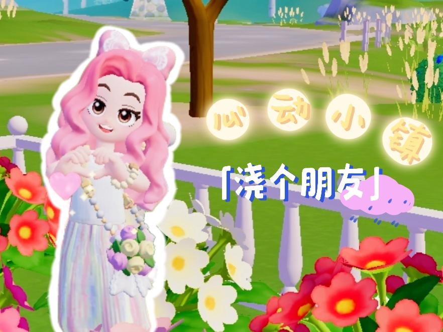 #心动小镇 今日彩虹天,朵朵在花海里面,两个彩虹花束分别在朵朵旁边的高塔边,另一个在双人秋千那,还有一个会刷新在自家门口#心动小镇攻略