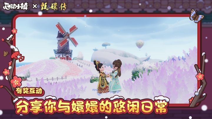 巴布,发展家们好~心动小镇 × 甄嬛传联动于今日正式上线啦!全新联动风物奇珍主题展、月光宝盒、限时活动“甄嬛玩转小镇”也在今天和大家见面啦!对联动主题服装和活动感兴趣的发展家千万不要错过哦~落雪时分,假如嬛嬛来到鲸鱼岛,她的一天会怎么度过呢~是在落雪小镇和好朋友一起打卡小镇各处的风景?还是在贵妃榻上观赏屹立的冬梅?还是在雪中闲庭信步、和好朋友一起谈论诗词歌赋?在评论区晒出你与甄嬛的可爱合照