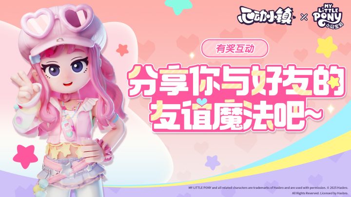 巴布,向发展家们问好~在这个热情洋溢的夏天,发展家们有没有在小镇中感受到来自小马朋友们的“友谊魔法”呢?这份魔法会带来怎样神奇的力量?快让喵喵一起来见证你们的友谊时刻吧!友谊的光芒正在小镇悄然绽放,喵喵邀请发展家们和小马朋友们一起,在小镇留下闪闪发光的心动时刻~ 【活动规则】1、在评论区发布你和好朋友在小镇玩耍的照片,照片中须带有“小马宝莉”的元素;2、发布的评论内容需为自己的原创内容