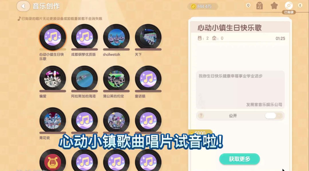 心动小镇梦想音乐歌曲唱片写作书籍小说故事🎶📖 欢迎来到鑫时代音乐与故事的小镇!在这里,你可以自由收集唱片、阅读故事,也可以点播你喜欢的歌曲或书籍类型。我们每天都会上新哦~小镇号请关注评论区作者发布! 📀 唱片收集(每日上新) 现有60+首歌曲唱片完整优质版,全部由 「安妮」 出售(优先刷新小镇成员的歌曲,每次随机刷新两种不同的唱片)。 🔁 如何刷新:退出小镇重新进入,每次可刷新两张唱片。购买前可点