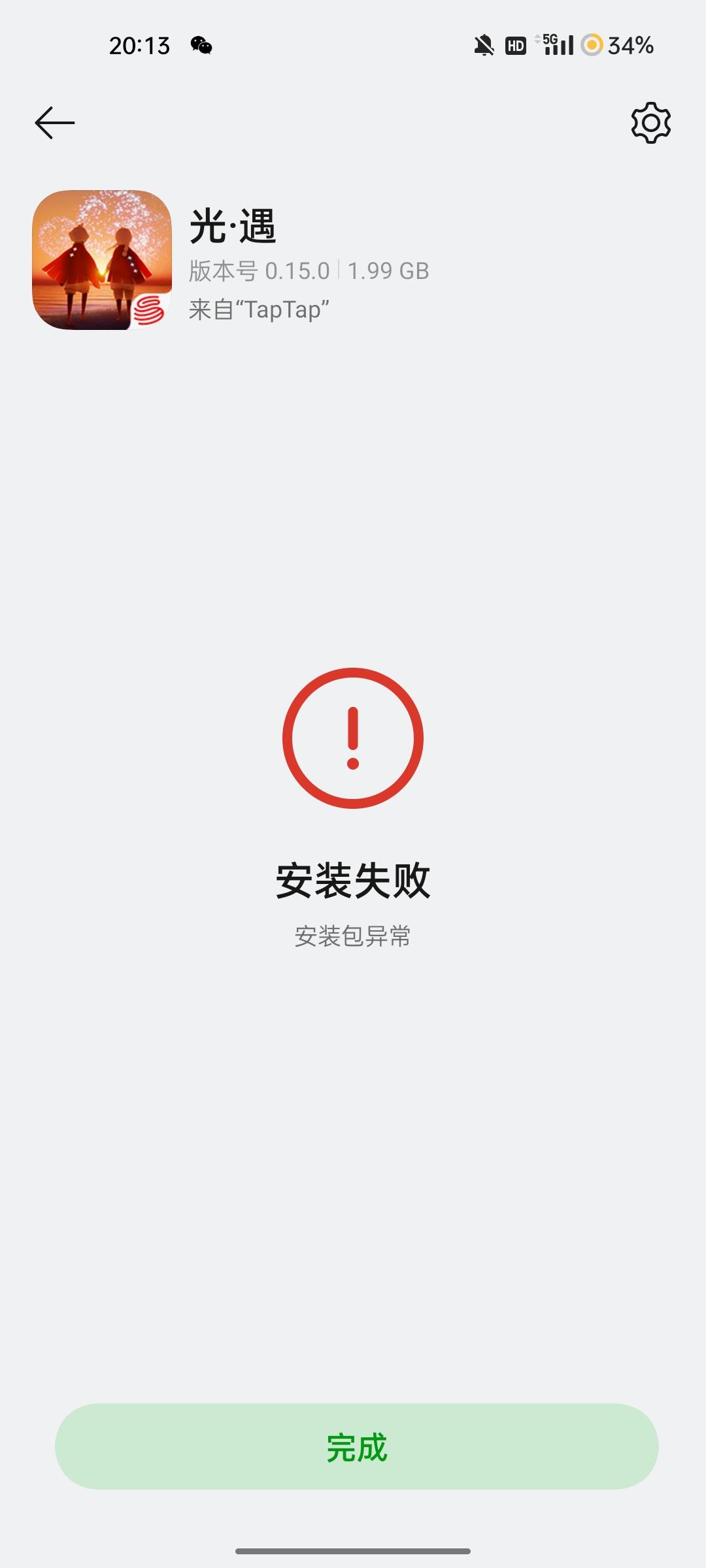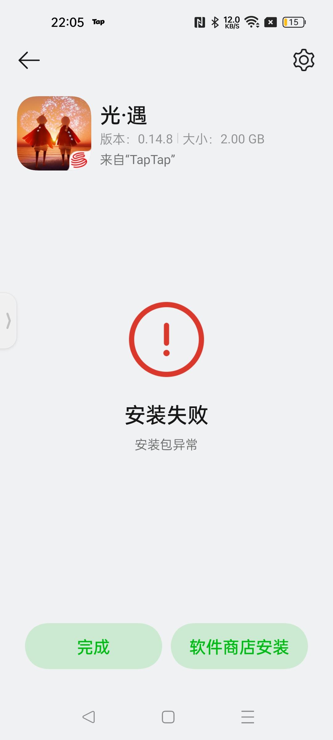 下载已经三四遍了,一直显示安装错误,本来是更新的,这边都显示更新完了,点开光遇是还是停在更新界面,然后再返回这边更新,发现更新不了了,因为已经更新完了,之后没办法就删了重下,现在已经下了三四遍了,就是装不好,连的就是WiFi下的,也没用流量,内存也清理完了,然后还是下不了。。