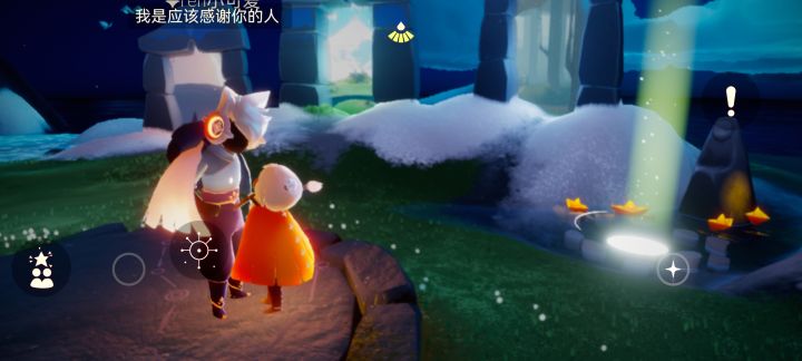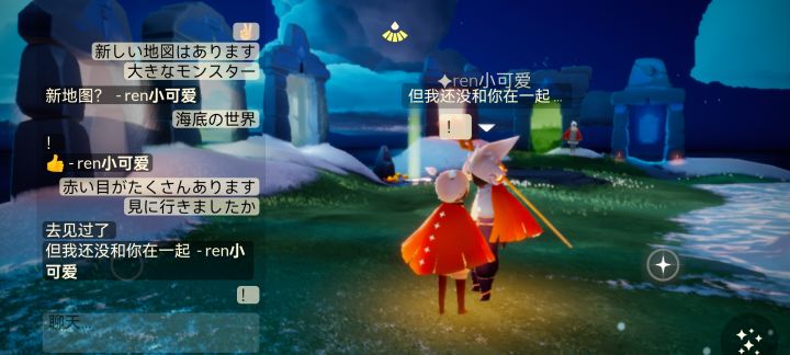 p3:她先夸我换了一个新的斗篷,很好看,然后自己也去换了和我一样的斗篷(😻太可爱啦),然后我问她有没有去新地图去看怪兽,她说去过了,但是还没和我一起去过(awsl)