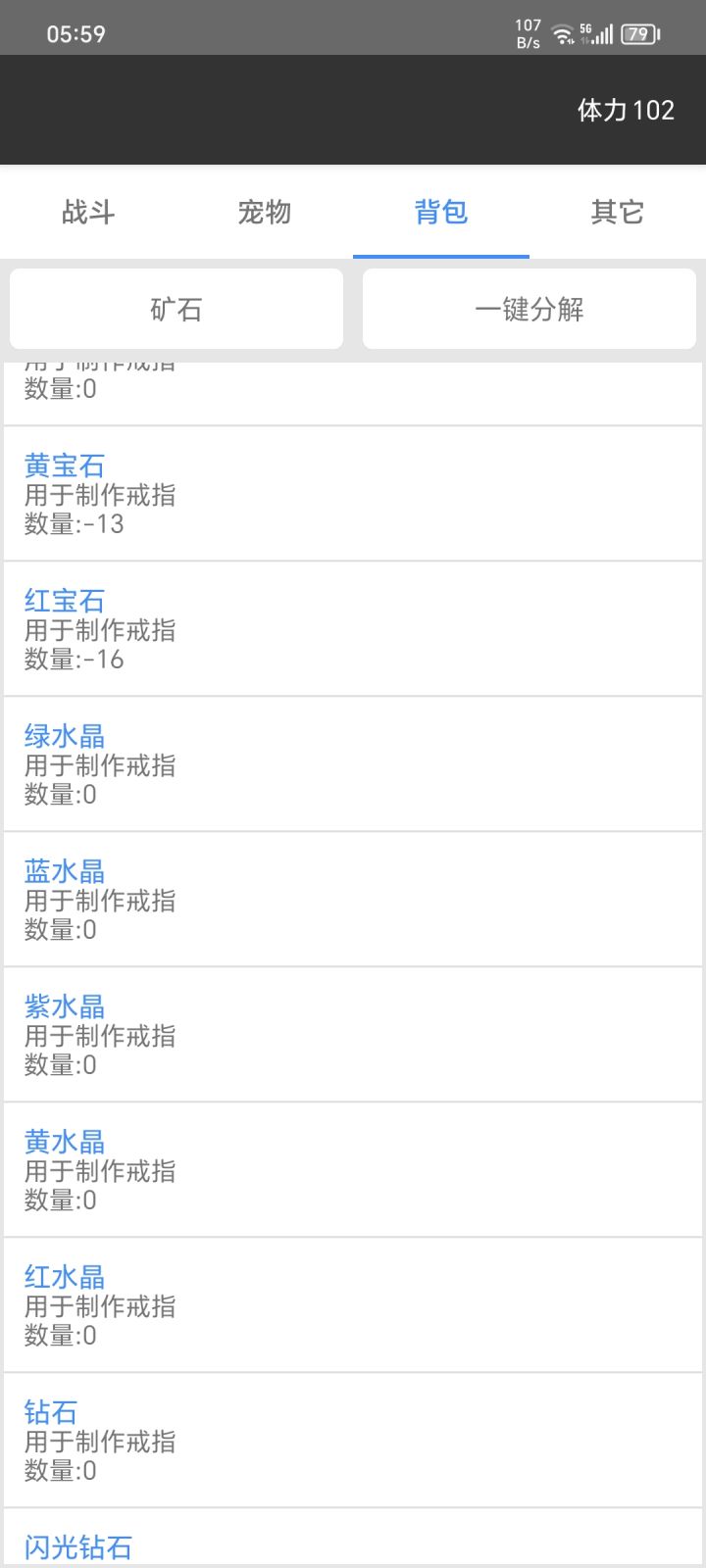 戒指打材料的话,可以一直选一个矿石,可以超过30这个数值变成负数,但是打出来的效果不行,而且还倒欠矿物宝石