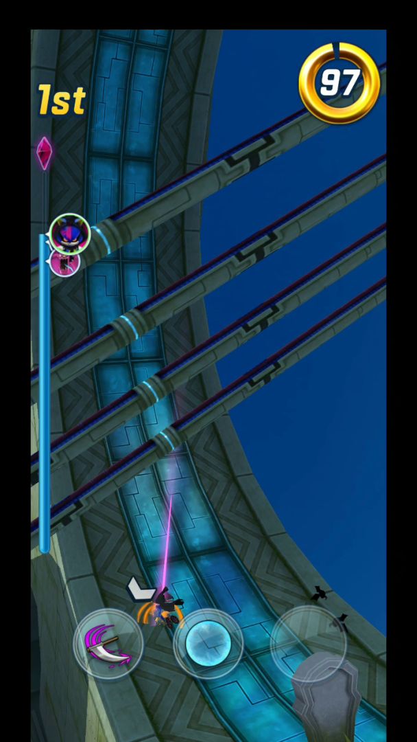 Sonic Forces: Speed Battle是个跑酷竞技游戏,那么现在我先简单说一下游戏流程,首先开局你会进入赛道,开始你的第一局(人物默认sonic)你将和3个人机对打,然后你赢了只有这么简单???不不不接下来,你将面对全球几亿玩家的挑战,爬升排行榜,解锁更多人物,升级这些人物并操控他们打败更强大的玩家。人物的三数值比如索尼克:速度10,体能5,重量3这里来讲解一