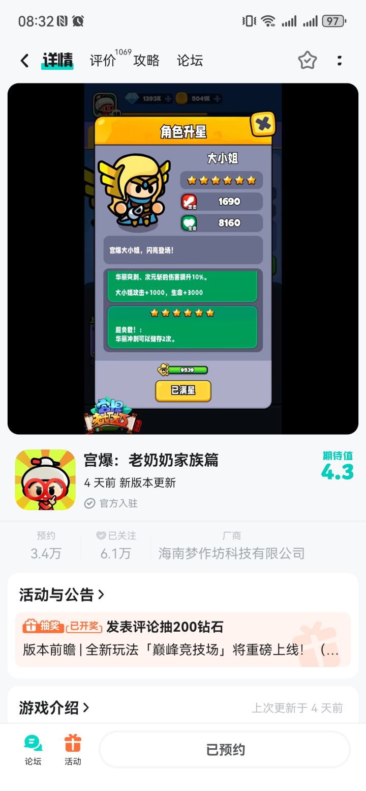全新版本已经更新完毕,本次版本为大家带来了SSR角色专武及SSR新角色【大师兄】专武系统有一定的开放门槛,大家可以前往各大平台查看专业玩家测评后再决定是否开启大师兄专属礼包也已经在游戏内上线,大家可以前往游戏内购买解锁~为了尽快的解决各位奶粉反馈的问题,特此设置本次的【奶粉意见小站】大家可以在评论反馈相关问题与对游戏的意见游戏官方将会第一时间为大家处理解决!【BUG或反馈格式】手机品