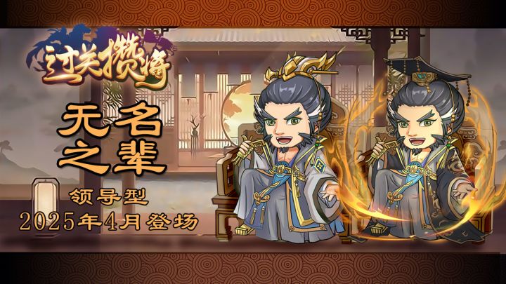 领导型“无名之辈”将在《过关攒将》在2025年4月版本中登场,该武将作为新主公推出,创建档直接获得。解锁条件:1.获得任意无名之辈专家1个。2.必须要真命档开启。“无名之辈”和其他主公有那些特别之处呢?1.该主公前五个募将令直接招募各个类型无名之辈各一名,一共五个。2.该主公的主公技将是其他主公的主公技随机获得1种,可以被一盒酥重置。3.该主公优势兵种将从其他主公随机选择1名,跟其获