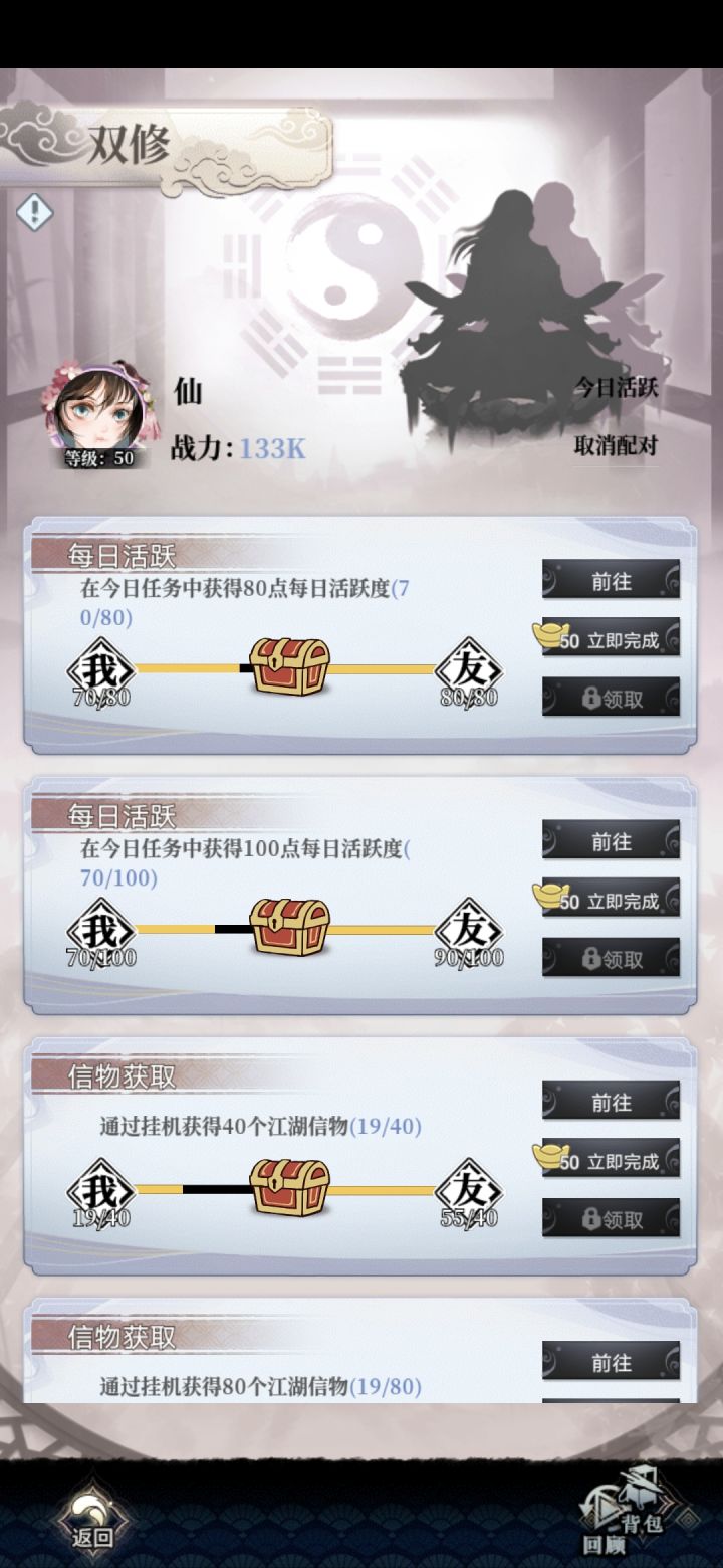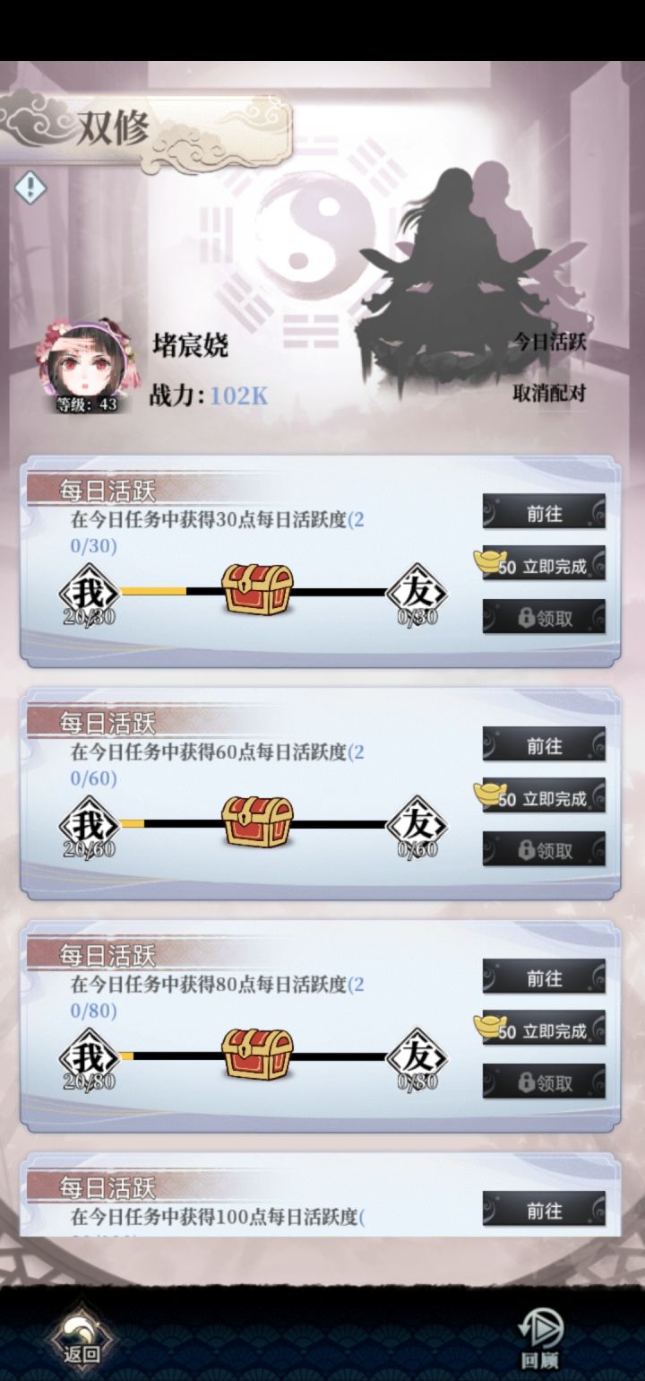 两个bug看着很难受1.宗门任务:小红点消不掉,我可以接受上限,但是麻烦你别出小红点搞心态行不行。2.双修任务:日常任务已经满了做不了ID:wni121359724服务器:S12-霞裙月帔