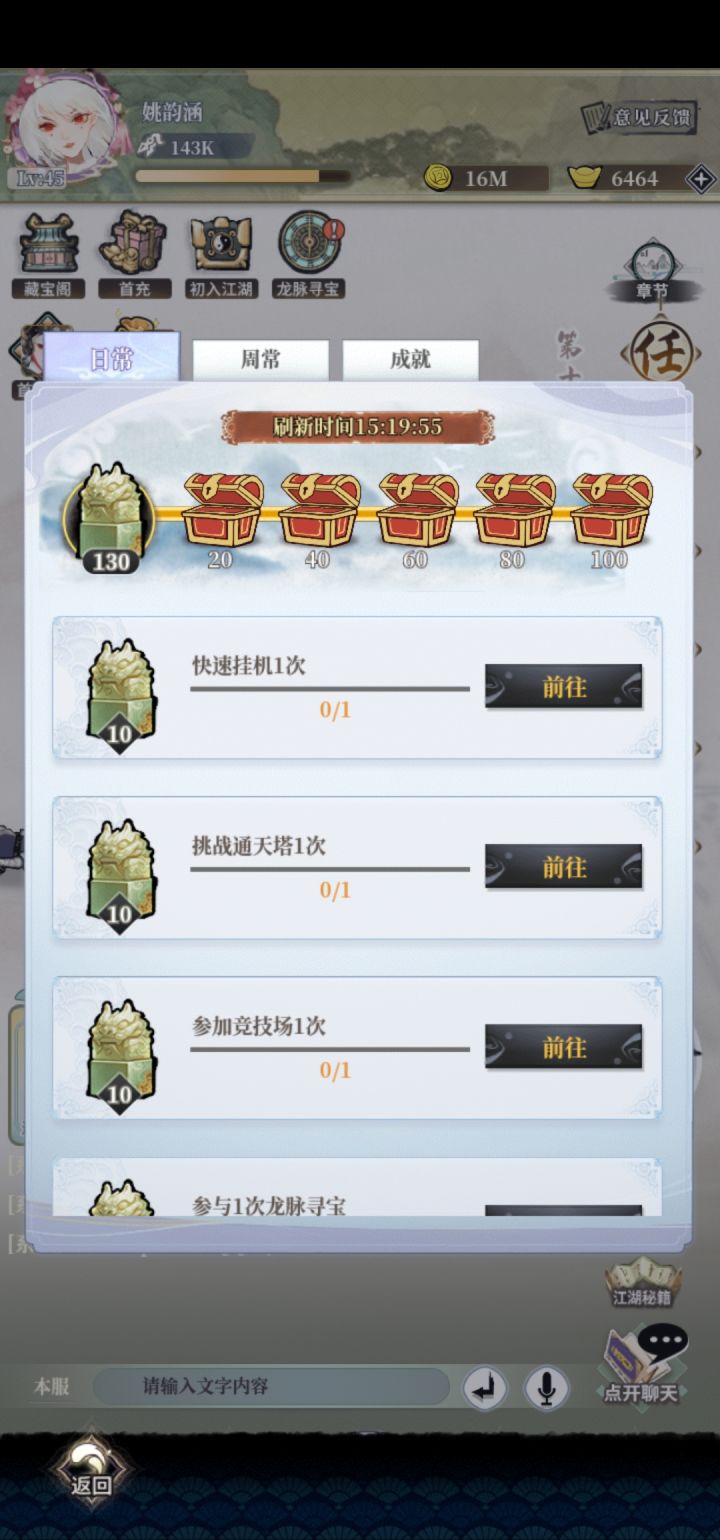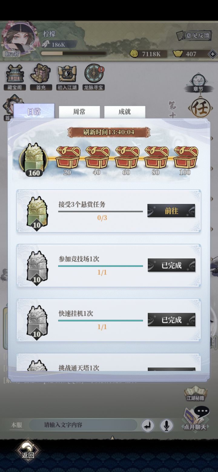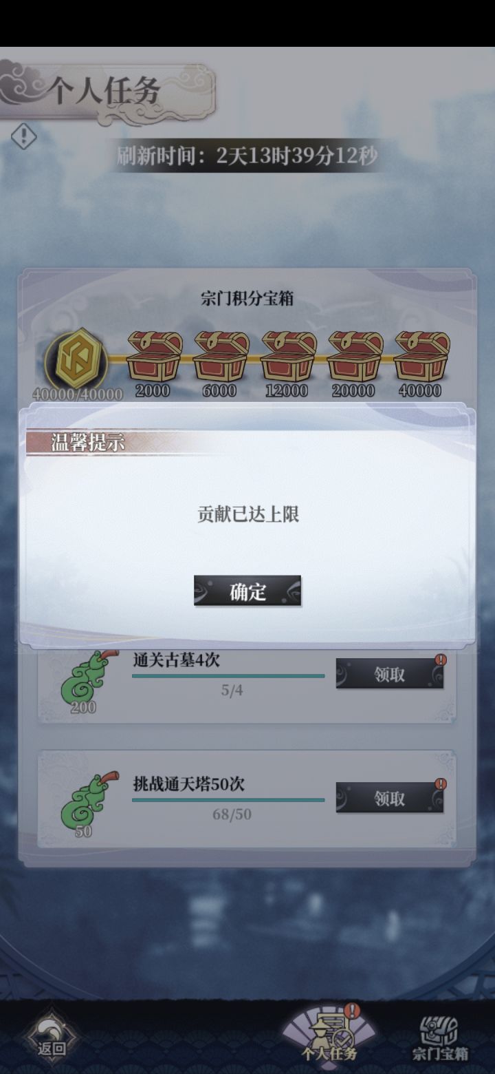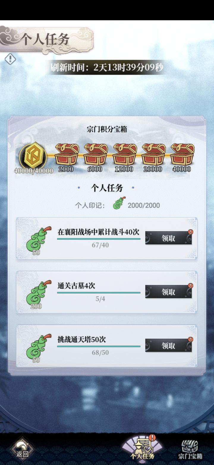 我剩下的110点活跃值呢??还有宗门个人任务什么时候刷新??2000点获取够一次就完了?