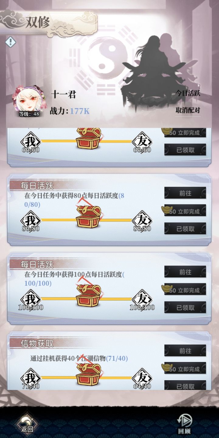 什么情况,维护结束,双修任务全完成了,奖励全被吞了,昨天好像就被吞了,但是昨天我以为我记错了,今天都没上游戏就全完成了