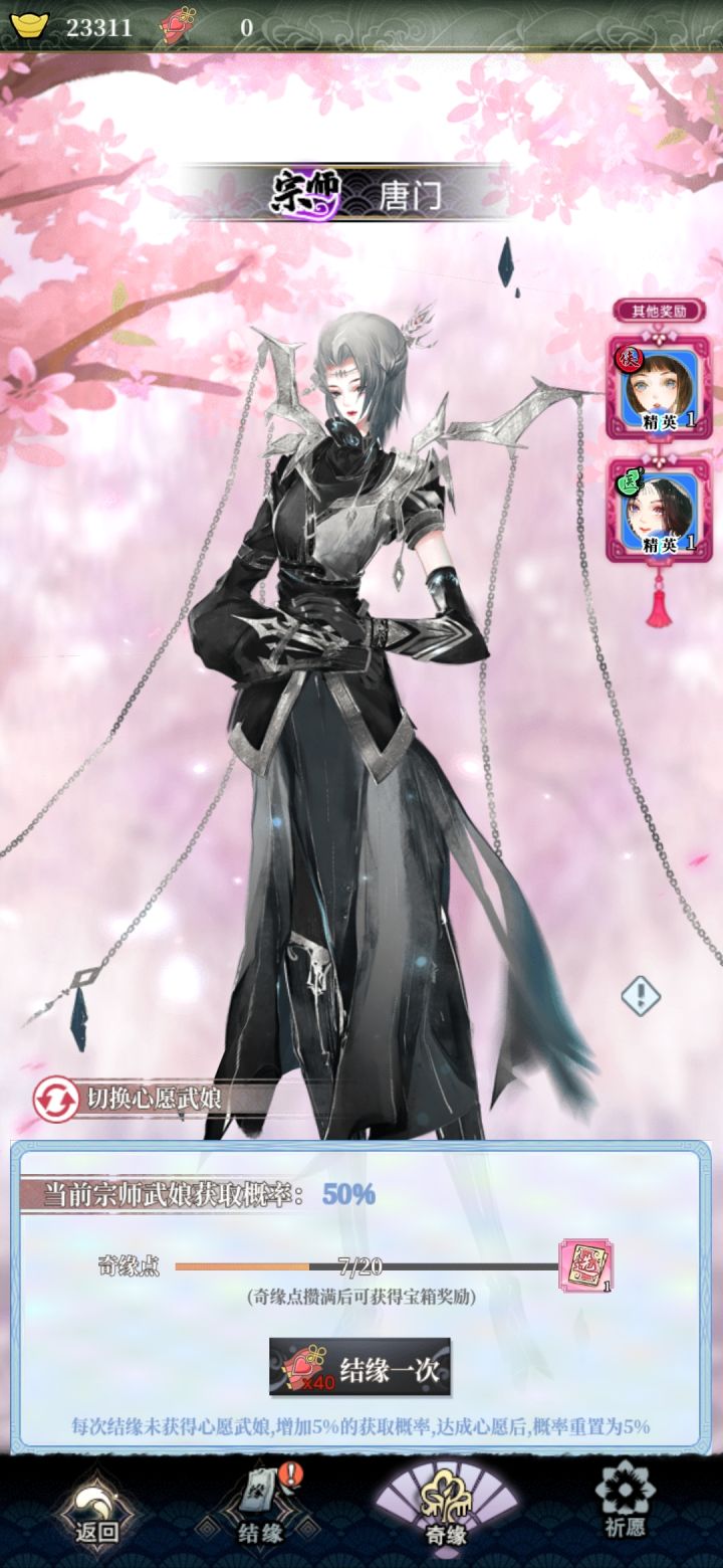 这概率是往下调了吧,结缘结到50,60才出了两个宗师剩下算精英。真。。。。