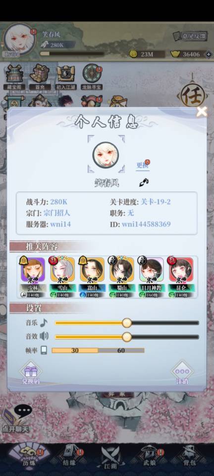主c首推日月神教,以后不知道 现阶段很强。挂件雪山加伤害,其他位置根据自己池子搭配凑齐3木4木光环。阴阳角色推荐华山强力单点,相对其他阴阳容易升段。每周活动稳定一个 推图遇到宝箱优先华山碎片。