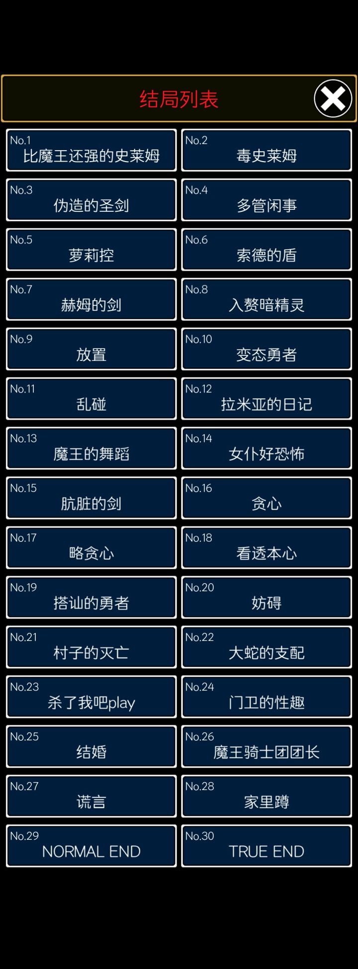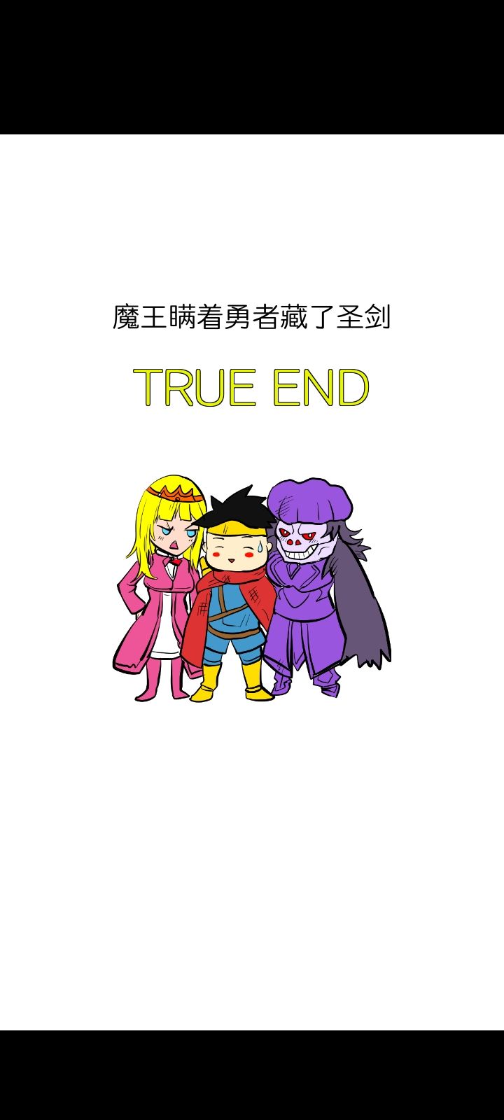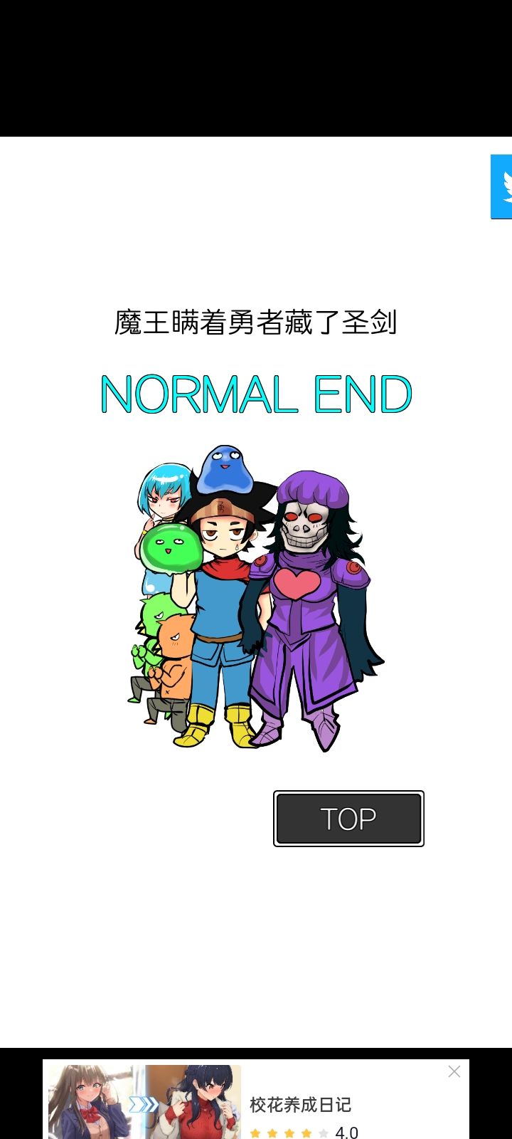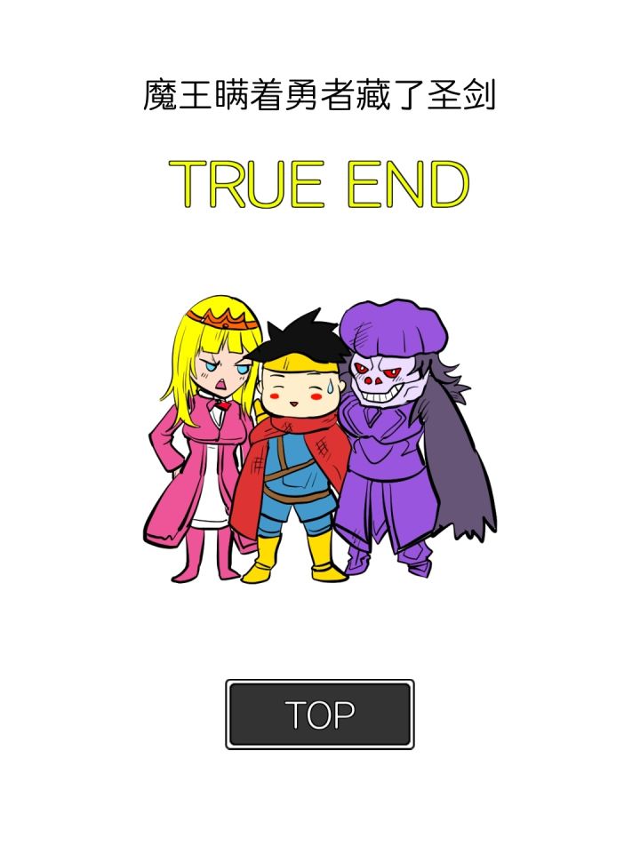 真结局达成√第12关,看到一把吧检坎向魔王的时候,就知道有点不对了,没想到魔王真的是个好的哈哈哈,和第1关魔王的礼貌也算是首尾呼应了。女骑士十分强大,前面如果选择美人计然后决定和公主结婚的话,女骑士就能勇猛地打倒守门怪,和她的真实身份作呼应了,真的很棒。还有,让魔王复活的也是她,假期不上班的也是她,还挺讨人喜欢的!😸故事很短,但每个角色都有自己的故事线,最后都能承接起来,真不错