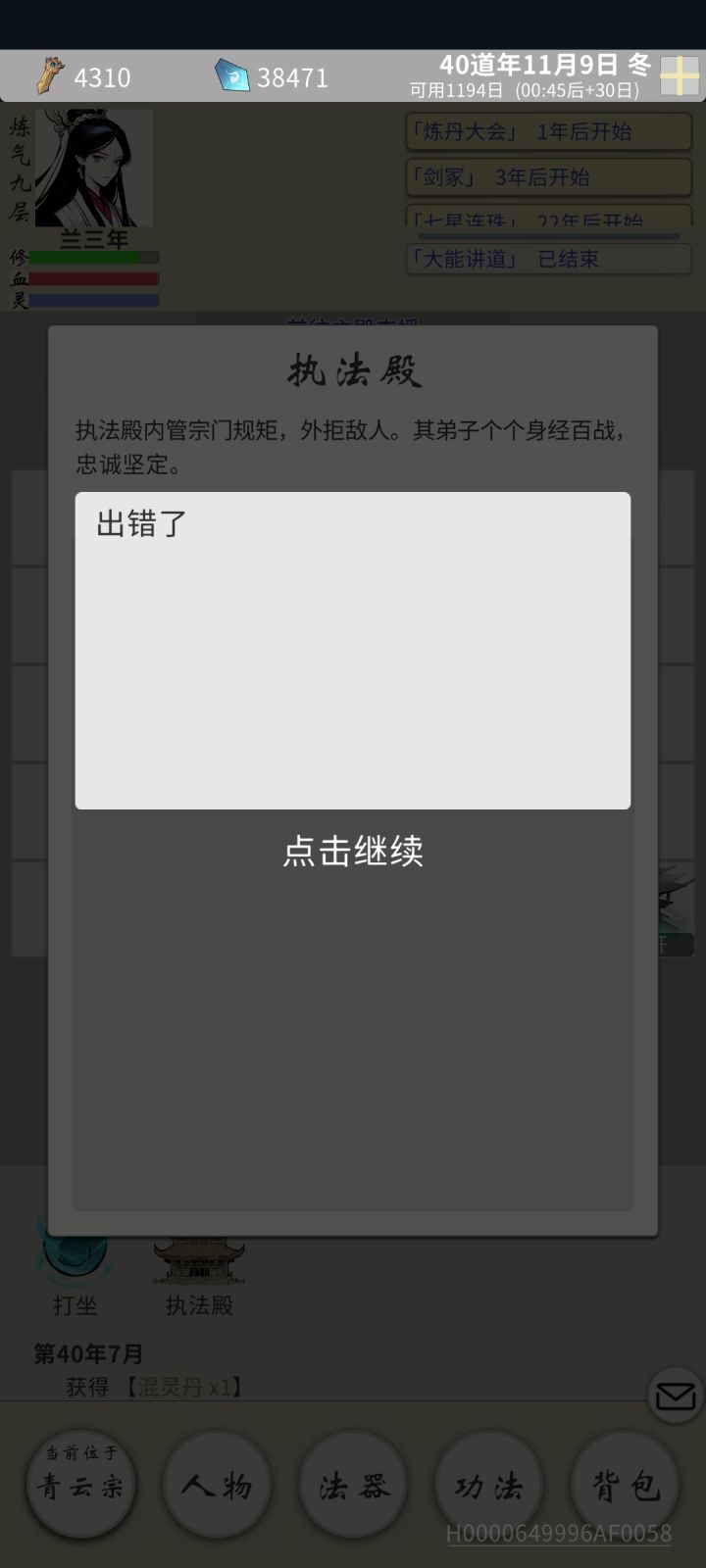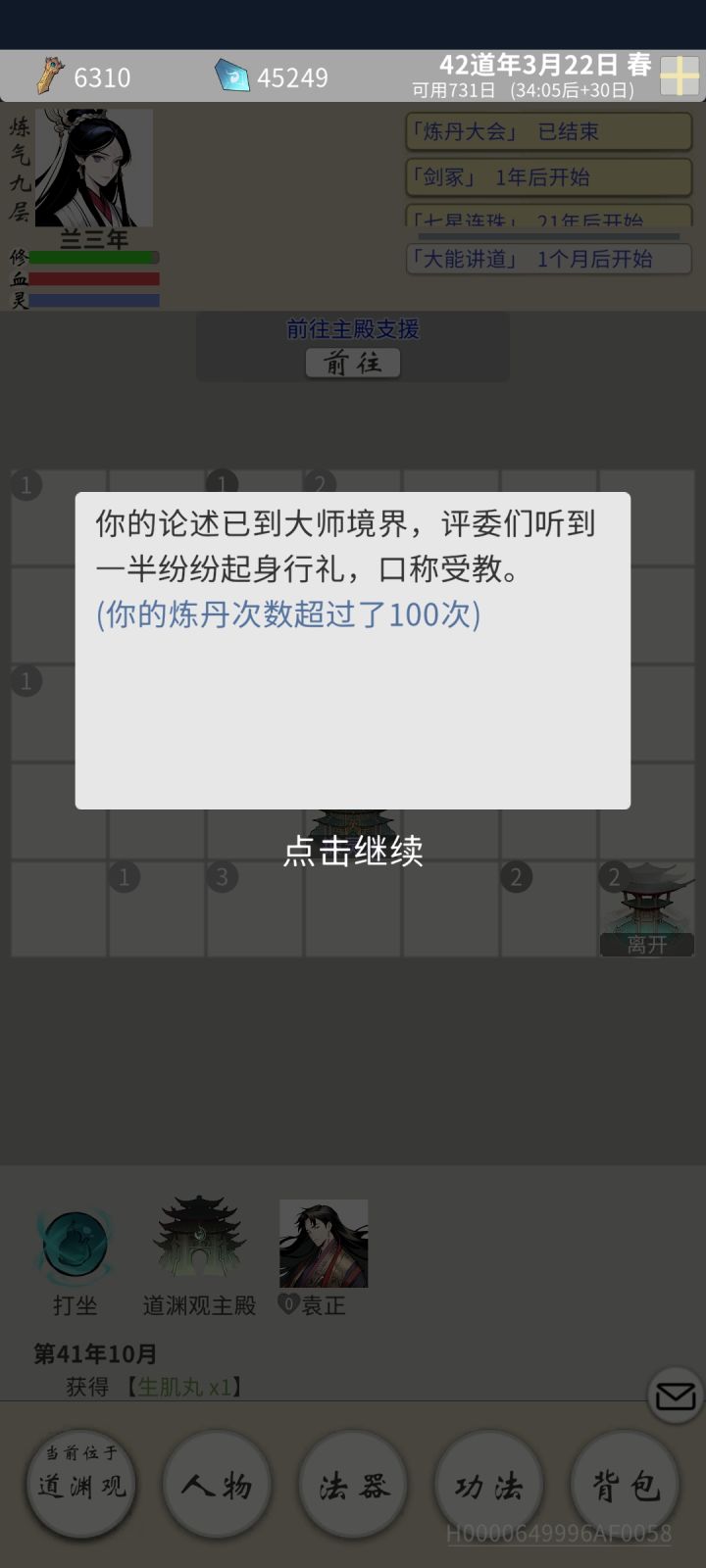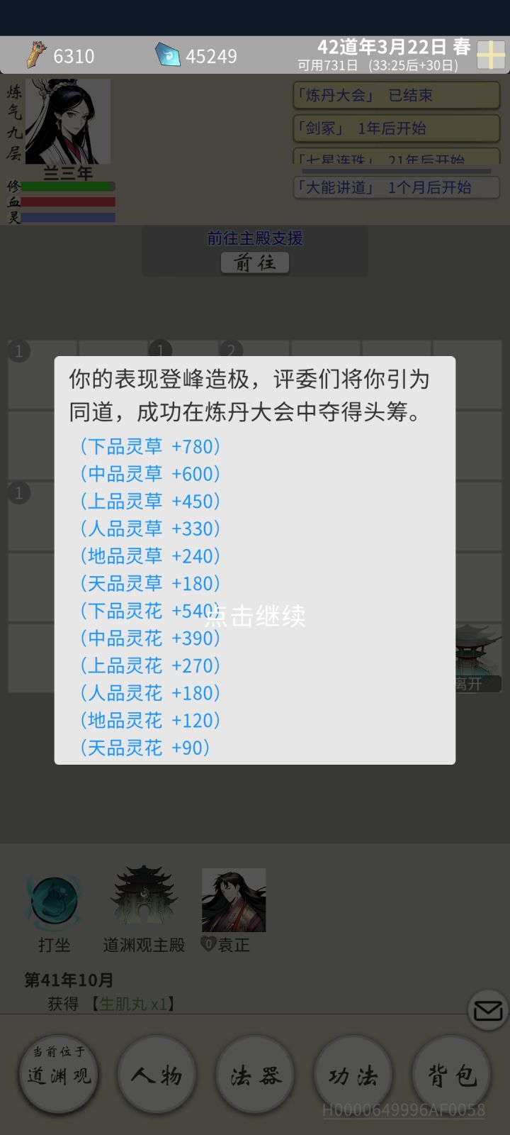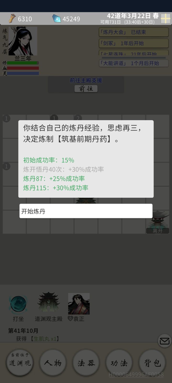 浪费12个妖兽头,第一次看到了,忘记截图,想着再点一下截图发个论坛反馈那一栏,第二次点了,截屏了,准备待会发论坛,但是作者邮件给我寄了东西,我不知道他更新了没,就又试了一下,还是不行————————————————————接下来就是万众瞩目的炼丹大会环节!第四次炼丹大会,没有运气,全是实力!第一次懵懂退场,到第二次忘记比赛,到第三次运气爆棚,到第四次全靠实力!第一个问题问丹方,虽然我不知道丹方