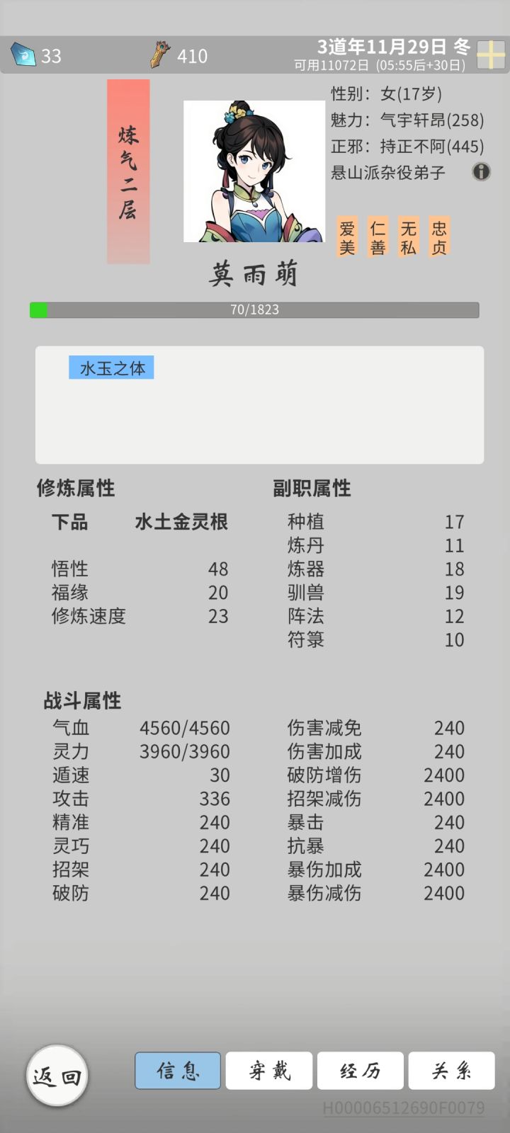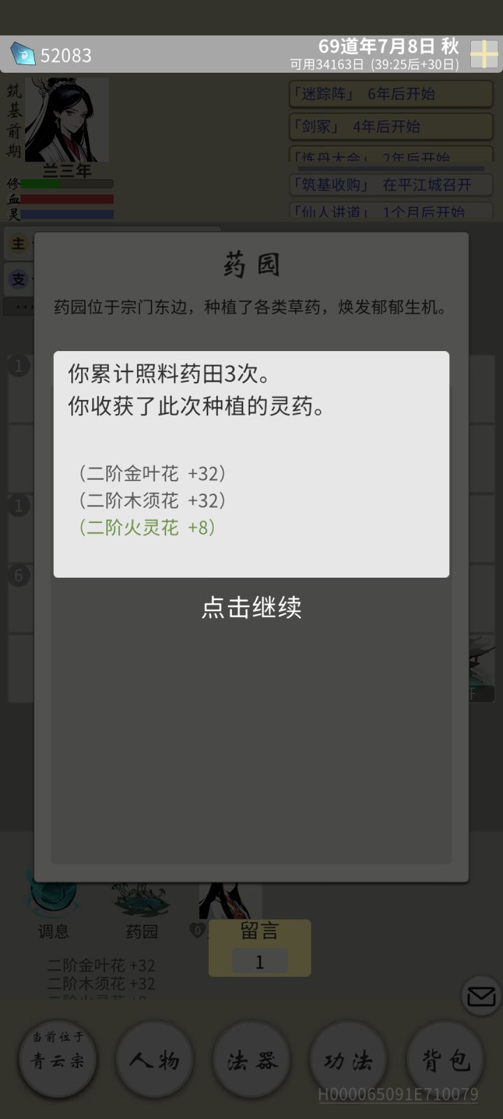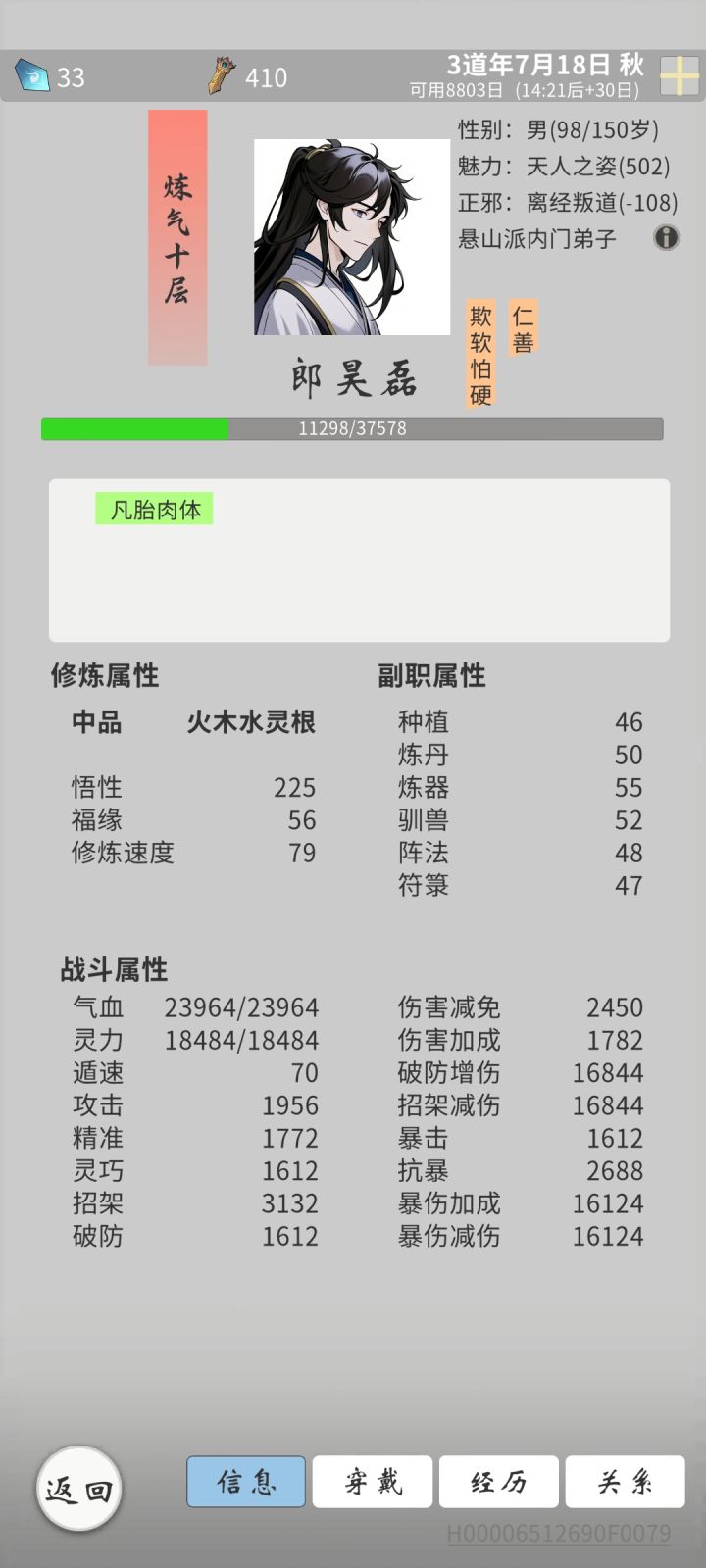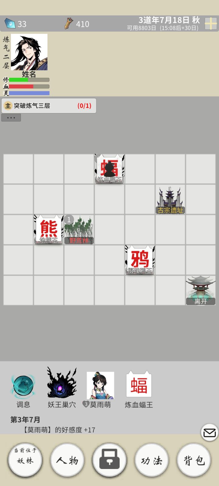 1.希望增加留言字数,二十个字太少了,活都整不了,加到五十或者一百留言字数挺好,怕挡其他人留言加个长留留言折叠就行,回复其他人留言这个东西其实我也想建议加,但感觉坏处也很多,不加也很好,还是交给官方判断吧2.妖核爆率奇低,换的筑基丹还没用,那三个本打了快四十遍,终于来了一个上品筑基丹和一个中品筑基丹(突破我还没用上,用参加群英会的一个下品就够了)3.炼丹一下炼很多只加一点炼丹熟练度(炼丹次数加