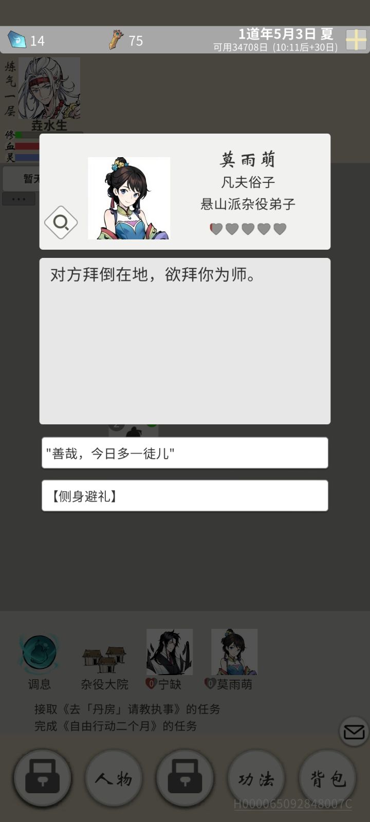 不是很需要注意的注意事项:妖兽材料可以留一些,虽然不留也没事,但不留后面还要打材料,前面不全换灵石可以直接交,一阶益气丹之类的在悬山派也不要全用了或者卖了,留一些,悬山派无了后可以换声望(没了也可以买丹药换声望,就是之前有的话卖了现在再买亏一点,但也是小钱,毛毛雨),还有注意是要有声望的任务,单买丹药换贡献是亏的,自己炼丹也行,只是刚从悬山派出来我一阶炼丹材料没了,然后之前包里也没了,只能买着换,