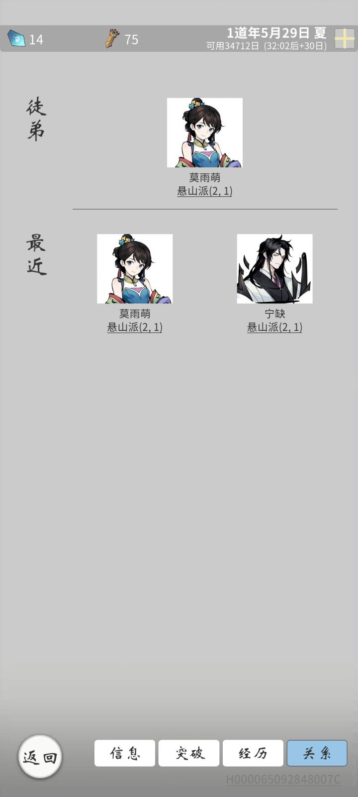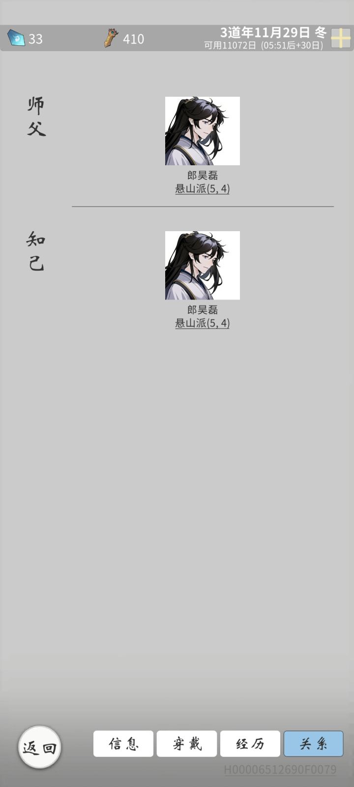 第一张图是上个贴说的某大师兄一下加四十多好感————————————————————第二到五张图,摸鱼萌和大师兄还为师徒和道侣,我兰三年的账号没有大师兄只有大师姐,摸鱼萌是啥关系都没有的,叫垚水生的账号里面摸鱼萌也没有只有我一个关系,这个叫姓名的号摸鱼萌多出一个师父和道侣(不好了,摸鱼萌被拐走了!)————————————————————还有第六,七张图,是我叫垚水生的号,摸鱼萌没油饼吧,