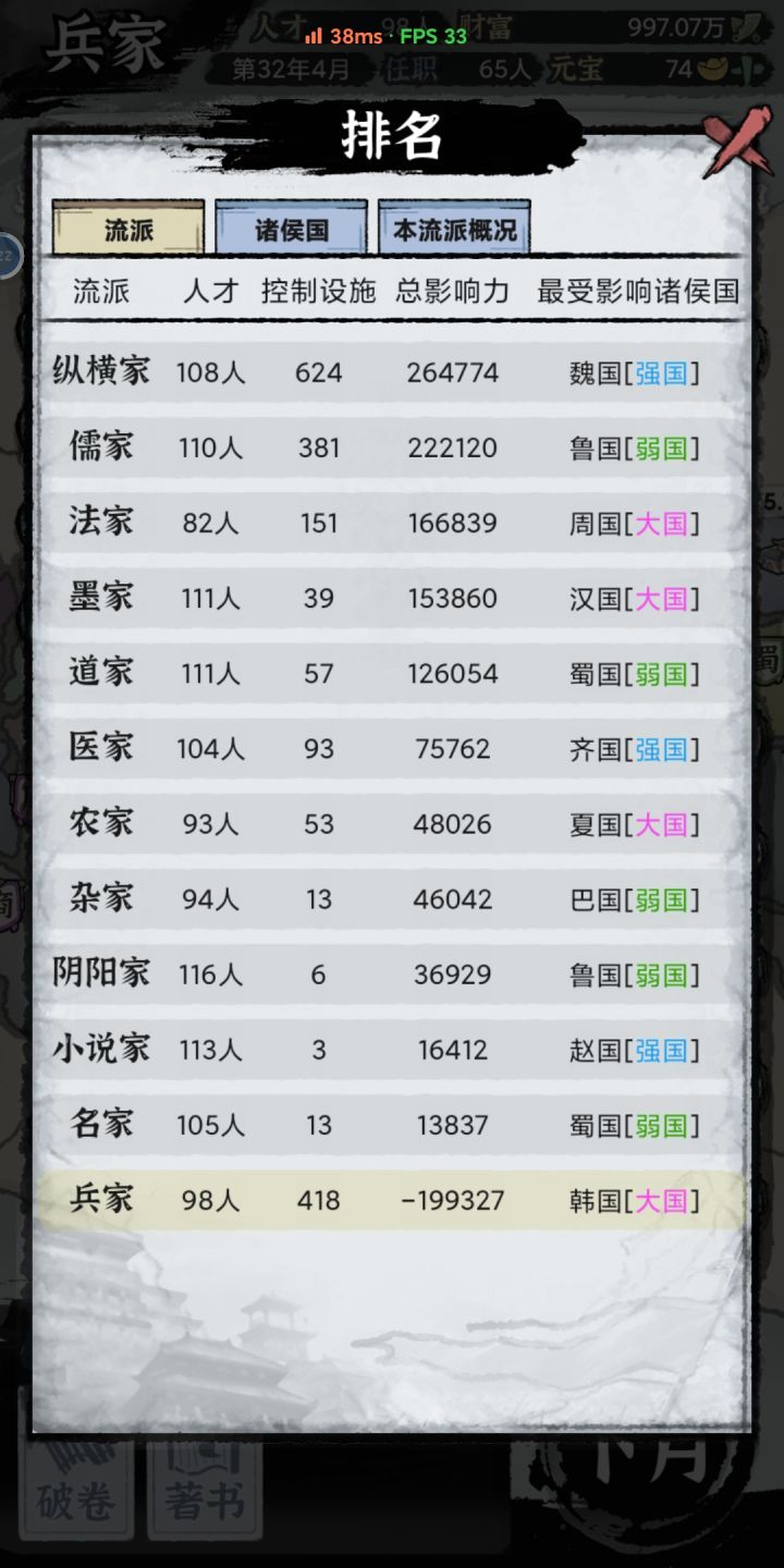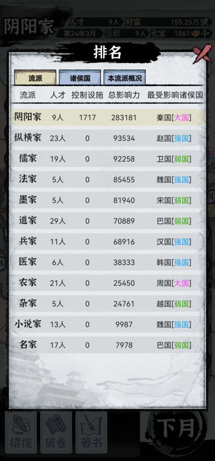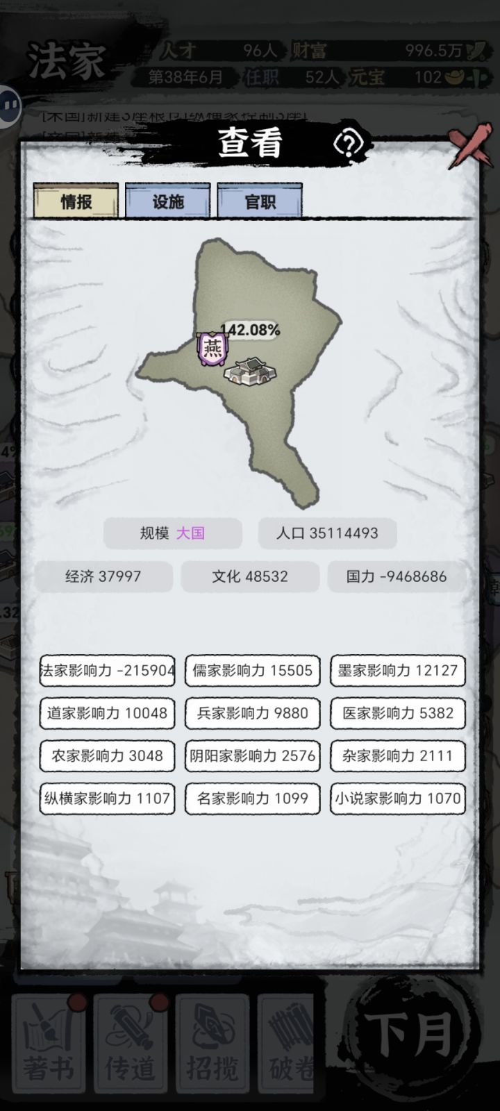 解惑成功+12点影响力,这么低的加成这个功能真的没啥用,解惑有概率得宝物,但是出来几件灰色的其它的都没见过了;还有各国设施我全都掌控,为什么排在我后面的几家影响力每个月都是千八百的上涨,这叫人怎么玩。