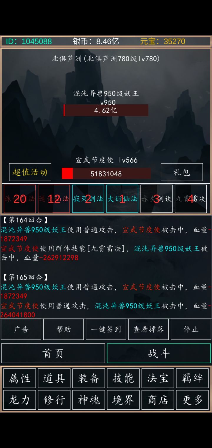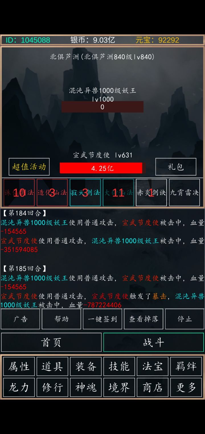 1000妖王,11阵法 16盘古,3.5的伤害185回合