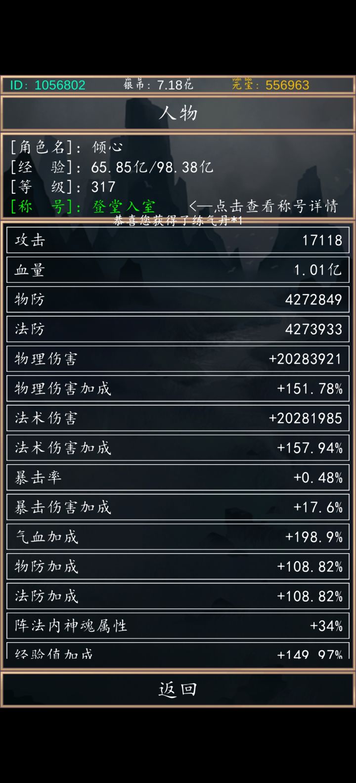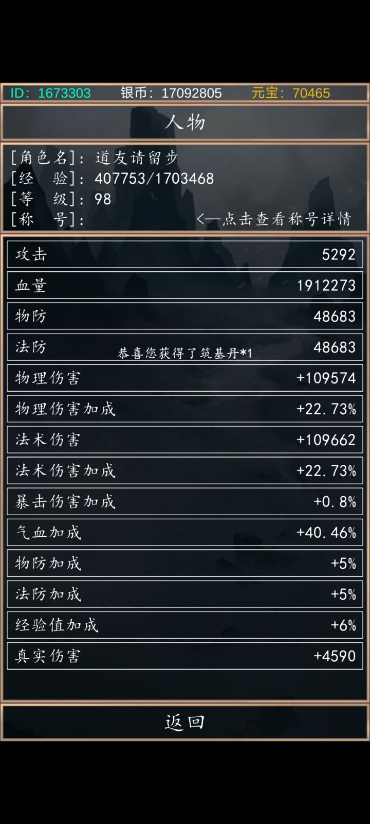过650妖王了兄弟们,属性图给大家参考一下