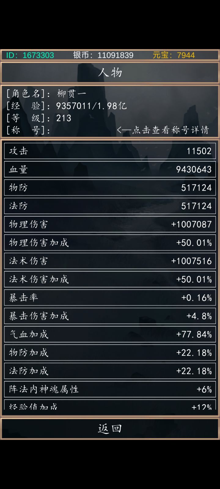 在论坛还有群里面没搜到50级相关的帖子 之前八十级的时候挂了一下没打过50级妖王 这个属性快追到100级妖王属性了 提供一个参考 后面又打了100级 打完还剩3w血很极限 200级妖王属性