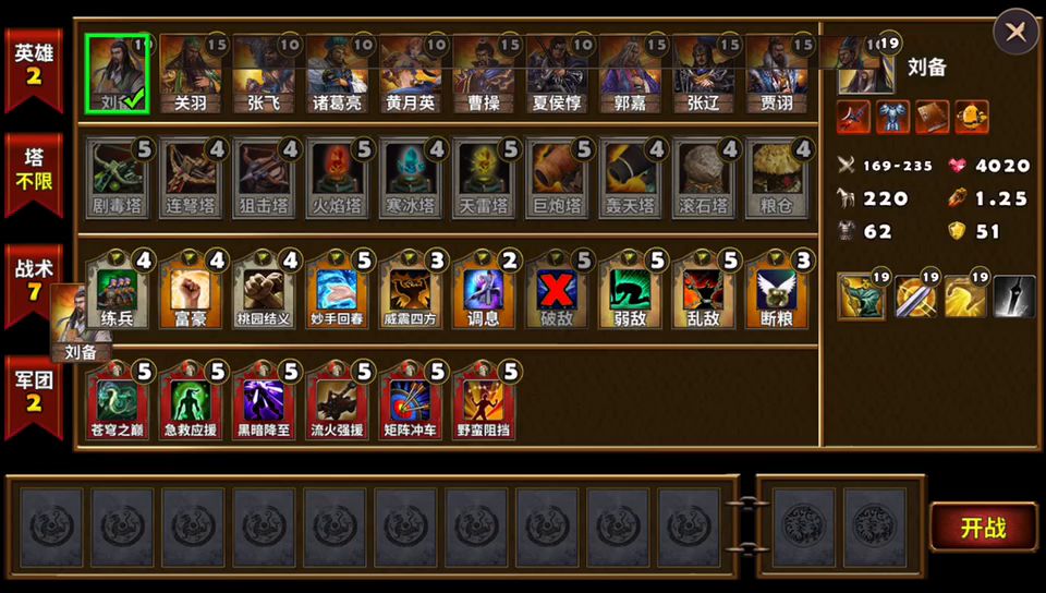 推荐给刚接触的新人,重点优先培养的英雄天关里面的刘备和曹操在攻城略地的剧情战役有着很好的作用,不夸张的说一直到最后一关的八阵图都离不开它们。绝对是一流的续航武将,不但能自己回血还能召唤兵种进行攻击,玩家应该尽快的把级别升到最高境界,难度三的北海之围参战的刘备曹操进入游戏只需召唤兵种在需要的地方就可以了,根本不要跑动就拿下来了三星。