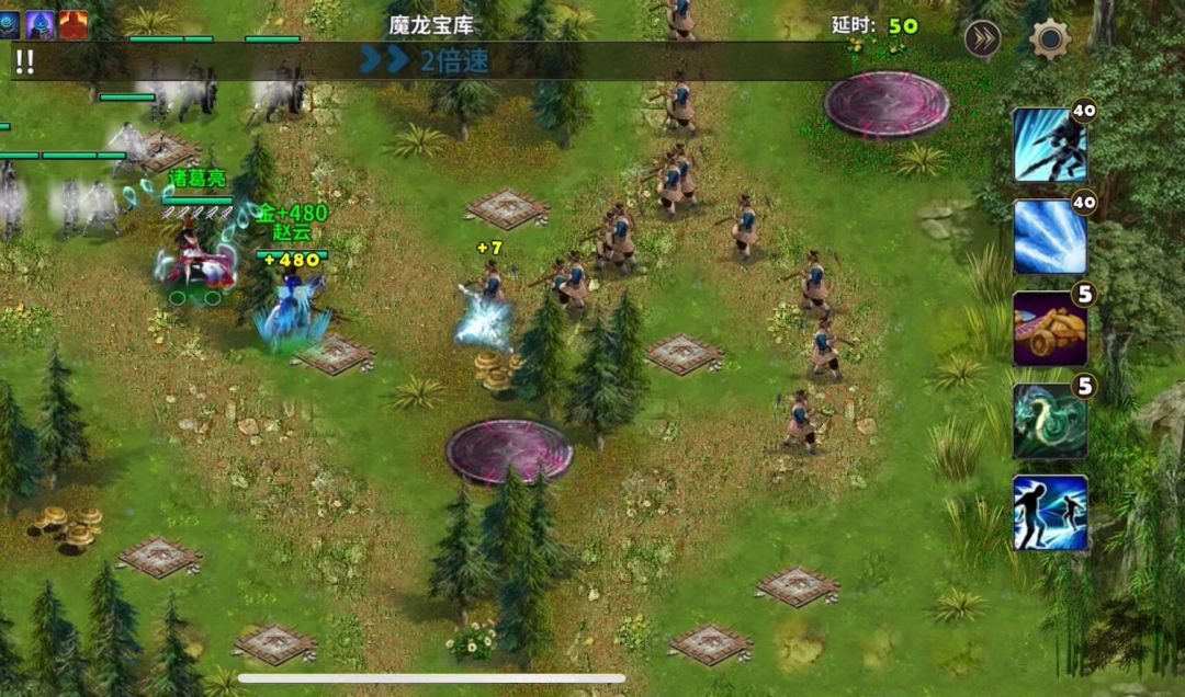 吕布传最后一关第四关选择曹操刘备出战,塔防其实我觉得无所谓关键是战术卡召唤祝福必须选上,游戏开始直接召唤弓箭手和白耳兵放置敌大本营的两侧,清除敌大本营出来进攻的敌人同时还能吸引敌人的巨塔这才是关键,不停放置让敌人无暇顾及前方,这样待时机成熟购买霹雳车摧毁敌人巨型塔防,敌塔防逐个被摧毁后集火攻击敌大本营摧毁后就可以胜利三星通关拿到首通奖励。