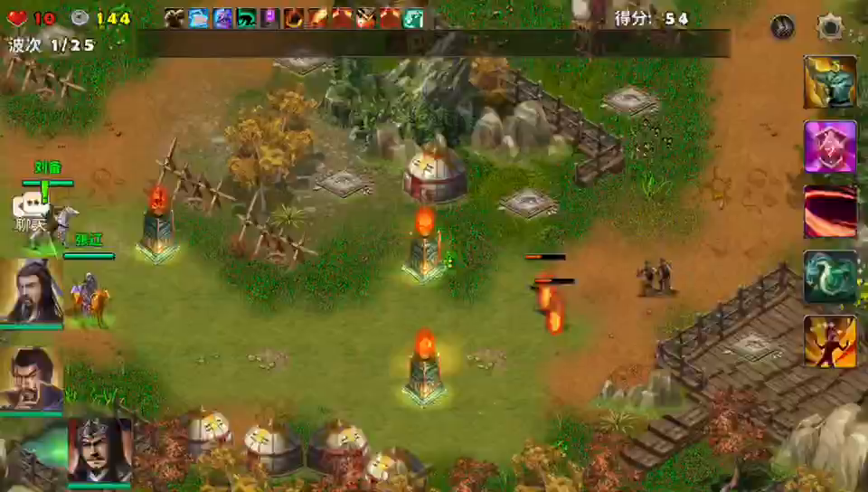 当时跌跌撞撞的一路打过来,没一个地图都那么费劲,如今我胡汉三都杀回来了。开局果断选了带有坎蓝宝甲的刘备和曹操进入游戏,两个武将全程不用来回忙了,站在大本营门口待敌,上面强弓硬弩,后面火焰塔防御,敌人全部斩杀,完美过局~!!