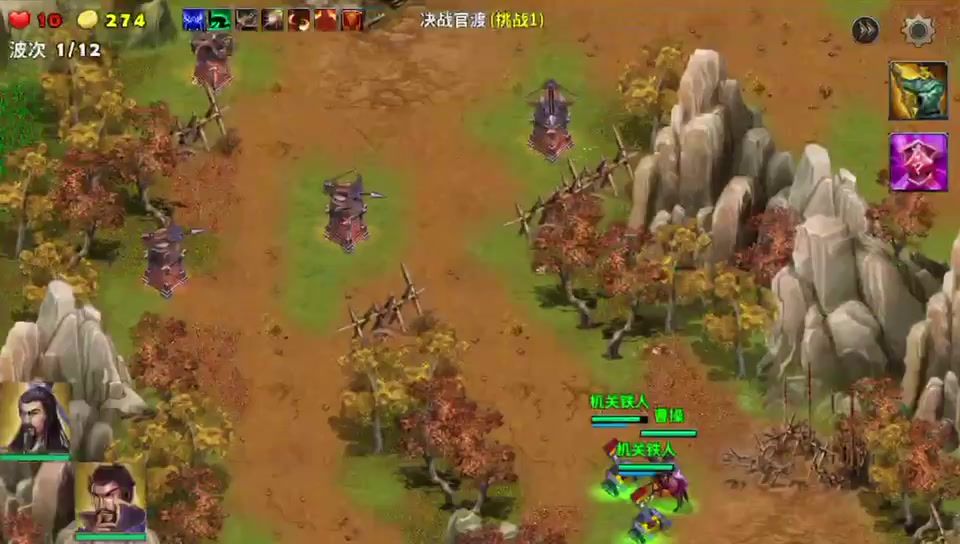 难度三刘备曹操选好战术卡和需要的塔防后整装完毕后进入游戏,敌城外营寨前放置白耳兵吸引敌方塔防的攻击,系统发兵在不被攻击的情况下速杀敌塔防和兵营,开始准备进攻敌主城,我方刘备曹操和召唤的士兵快速出现敌大本营,吸引敌塔防和敌军攻击,我方大本营不断购买兵种,源源不断的友军会快速攻陷此城。顺利完成通关。请参考视频