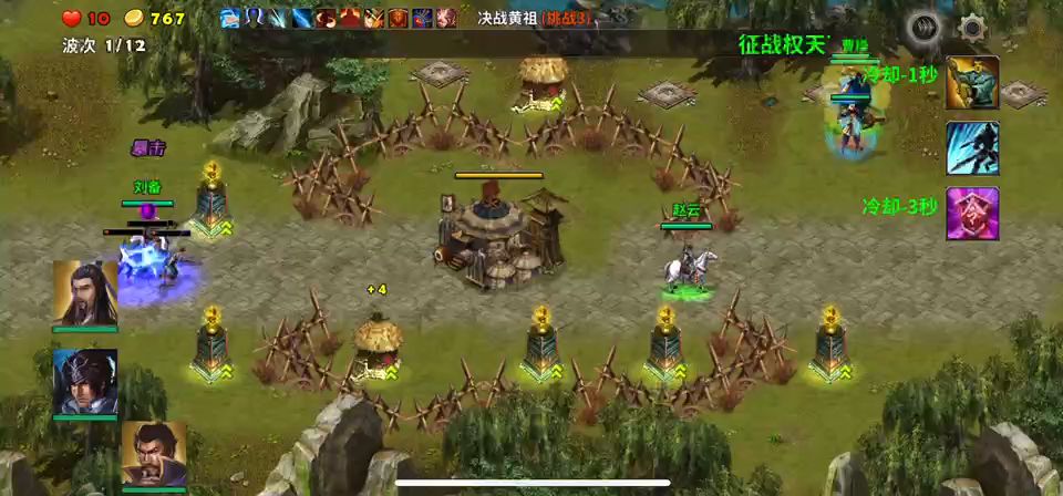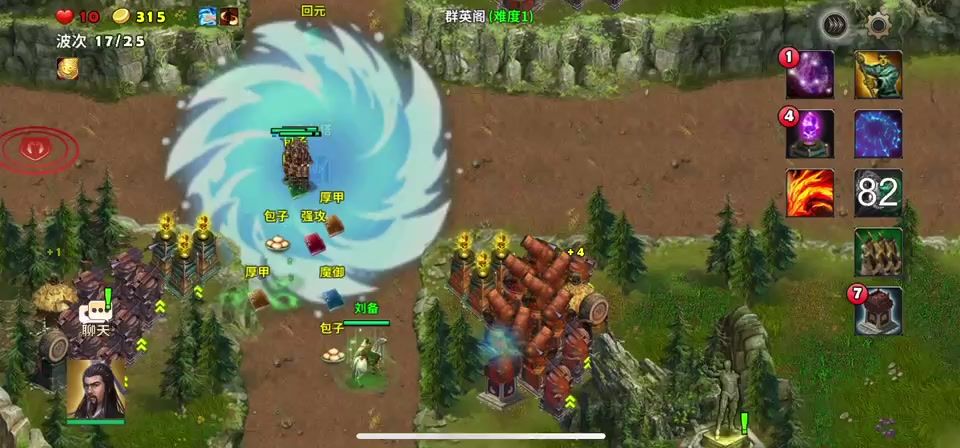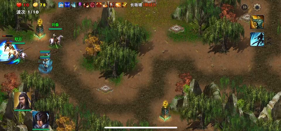 这一局专属的是巨炮碎片,需要强化巨炮的可以在此刷碎片。不好打的一关,敌人五路进攻,参战武将左右跑动支援,利用所选的天雷塔配合武将击溃来犯之敌,9点钟方向是重点。需要救助逃亡的夫人和简雍,被敌兵杀害就失败了,需要前有开路先锋,后有断后勇将。随着塔防的不断完善,此局是越到后面越轻松,请参考视频,祝早日通关