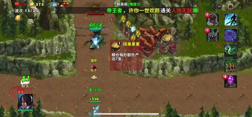 娱乐一下魔塔杀阵检阅一下满级的武将打了一局魔塔杀阵,这个魔塔地图经常会放在活动奖励里面,赶上的话通关还能拿20金币奖励,没有活动也是打高级藏宝图的好地方。翻车几率特别小,里面可以选用全部的基础塔防还防守敌人的25波攻击。英雄等级提升了也可以不用塔防协助守住塔,请参考视频。