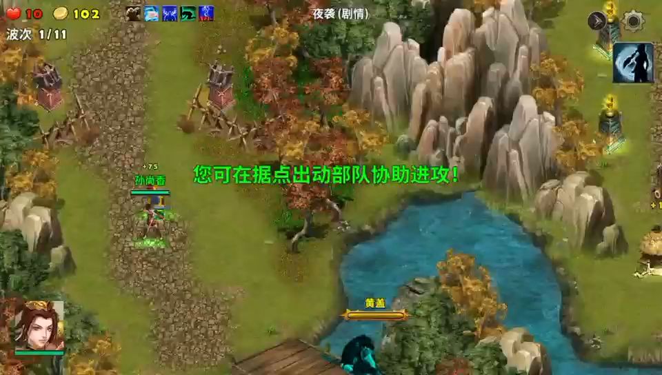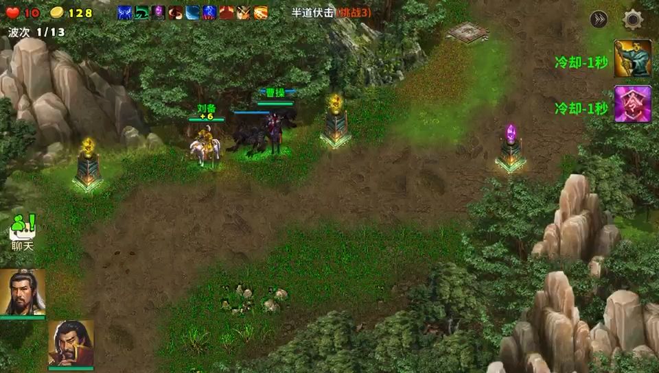 第一章的第二关,刘备张飞剧情出场不能选择武将,敌人两路进攻,我方需在两路敌军交汇处当道扎营以逸待劳狙杀敌军,土匪头子波才最后一轮会带领土匪猛攻,所以不要大意,尽快升级或建造塔防做好大战斗准备。首通可获得巨炮碎片10个。