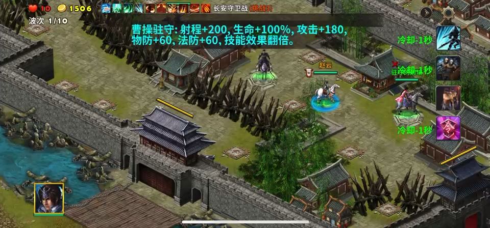 剧情过后就可以任性选择武将打难度关卡了。难度1到3难度基本差不多,给的首通奖励要拿的,选择自己喜欢的武将,威力大的塔防进入游戏,死守中间的大本营防止敌军摧毁。武将分开站在大本营周围抵御敌军。四周所有塔基建塔后升级,没有庞德的尽量不要开三倍加速。平速稳扎稳打才能过。此关武将最后一波左边出来,击败就可以获得胜利。