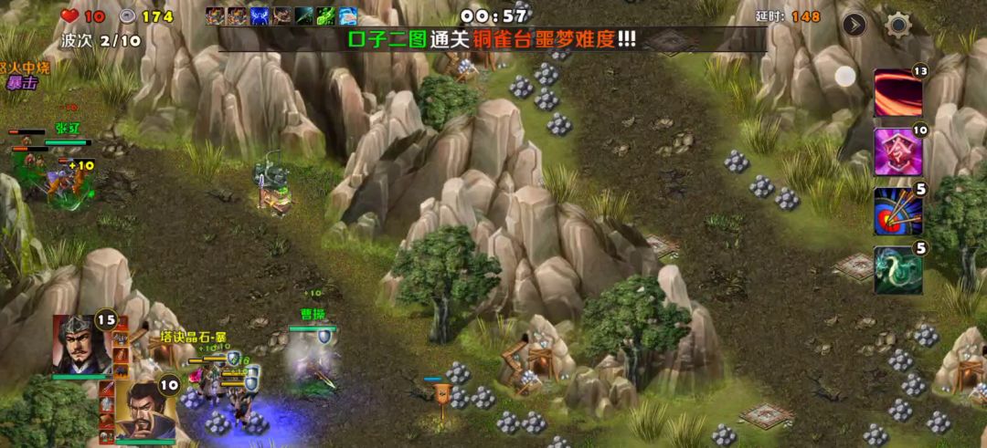 滚石塔是我比较喜欢的塔,输出贼高,还带击退,击退就等于控制,唯一的缺点就是不能对空,射程跟箭塔也没法比,虽然已经蛮远的了。秘境比较简单的,4英雄站桩放放技能就好了。这里设计的很不足啊,为什么最后一波南华老仙出来时候,英雄不能动。那提示什么靠近凤凰塔,什么靠近队友远离Boss,提示了有毛线用?8英雄都站在驻守台动都动不了,能操作?搞什么玩意儿哟,设计时候为啥不用用脑子。
