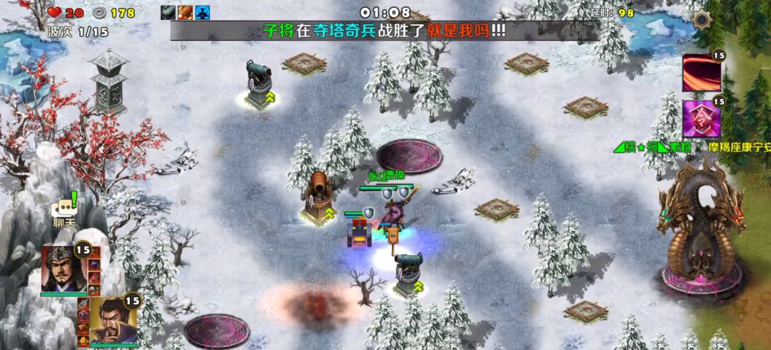 上周的魔龙比较难的,毒塔伤害真的比较少,只是持久消耗而已。我装备不行,这关全靠对面的大佬过来出兵帮我,才得以侥幸取胜。英雄方面用刘备张辽,刘备小兵可以抗伤害,张辽有控制,还不错能挡一阵。等以后装备起来,英雄买到黄月英那就好了。