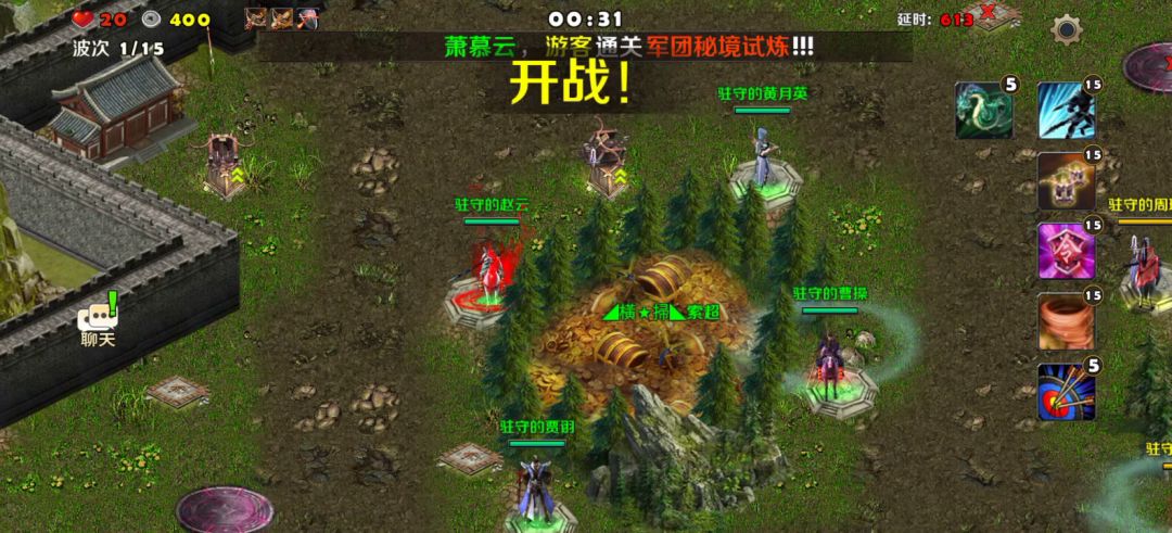 每周的军团秘境,只有周五周六和周日才有,比魔龙稀有吧,可以出董卓董大胖碎片和孙坚孙文台,两个英雄都非常难获得的。军团秘境不算难,很容易的,4英雄踩驻守点上面,然后塔就造本周给你的塔,什么塔强化造什么,没难度一路挂机就过了。最后南华老仙就召唤系英雄放一放召唤过去,然后军团技能放一放就OK了。