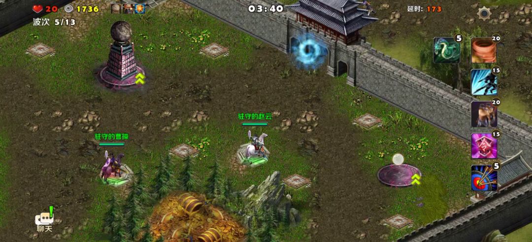 军团副本铁矿场,这一周的特性是我方单位每秒会掉20血,很多的,如果没有补血单位,很快农民全部死完了。这关必带曹操,要站在农民旁边给农民加血,张辽去跑图游走即可。这关有魔塔晶石可以给塔用,带上远距离石头的狙击塔,射程差不多全屏,真舒服。
