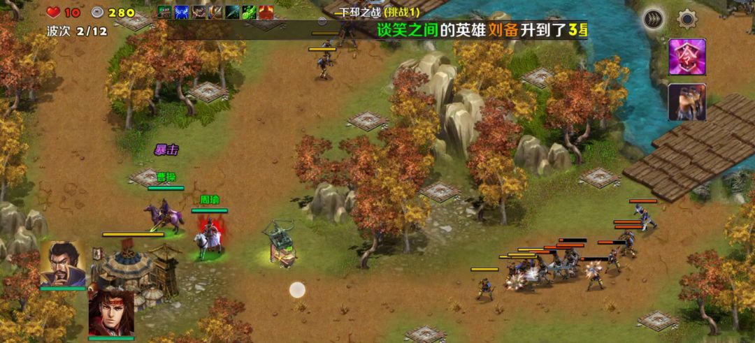 下邳之战比较难,毕竟是第二章最后一关了,敌人波数虽然只有12波,但小兵比较厉害,而且最后吕布很强,需要英雄提升起来才行。大家看我英雄已经提升起来了,再打起来很容易,召唤物非常容易抗住。塔方面还是毒箭塔,这个没啥好说。