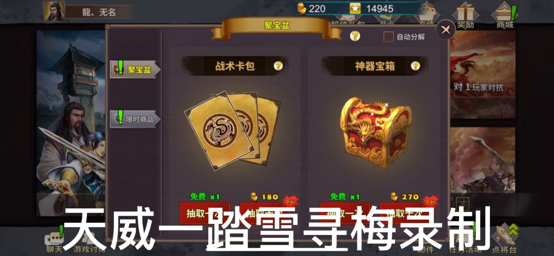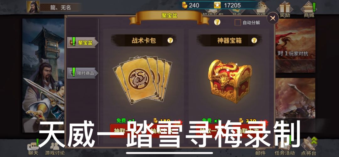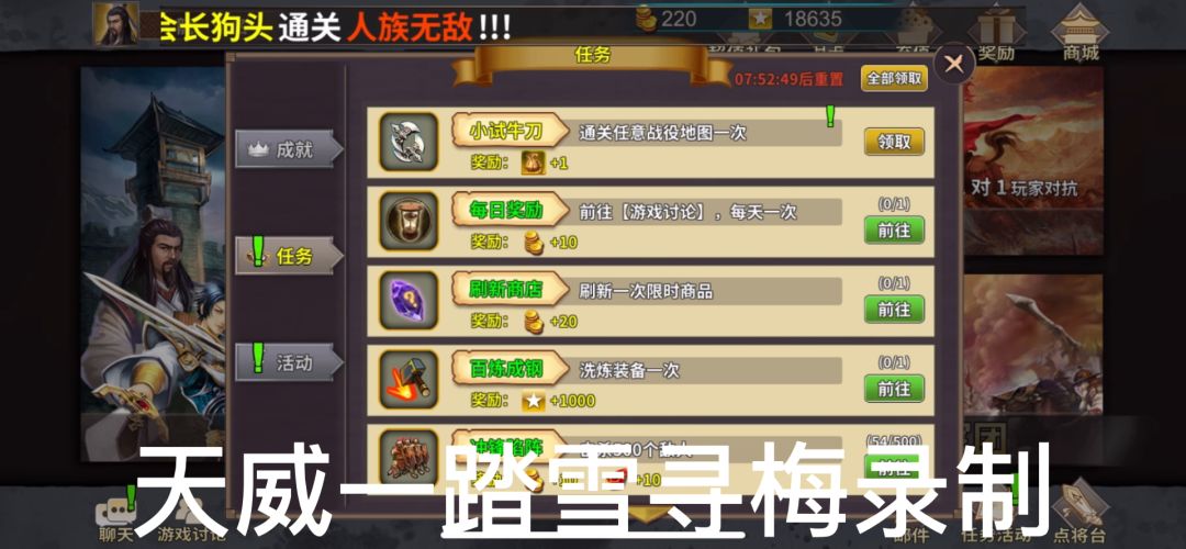 通关黄巾起义后系统自动开启关卡挑战功能,其实没有通关黄巾起义也可以去打挑战功能,不知道是不是bug,英雄现世挑战关卡随机掉落神木剑和一寸衫。进入地图可以选择2位英雄,就选刘备关羽吧,防御塔选择箭塔和炮塔,初始系统已经建好了一座箭塔,在敌人出兵口继续建造箭塔,中间建造炮塔,一切准备妥当后开战,敌人不怎么强,还没过来就被灭掉了,轻松过关,获得几件蓝色装备,还可以抽卡,附视频