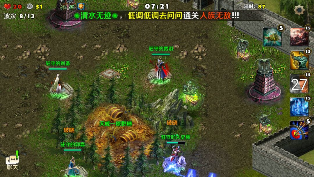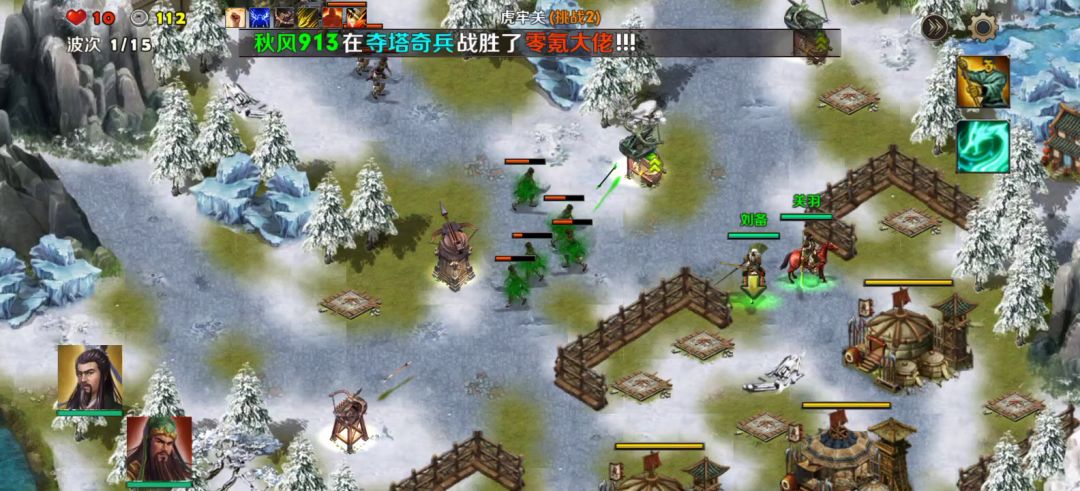 英雄:刘备(带上孟德新书配合技能牵制)后援:玄武、强壮力士卡片:(选精研、召唤、死亡防御塔加伤和主动技能)打法:我们把整合地图分为三个部分左中右,其实重点是中和右。开局在左边,中间建造剧毒箭塔和地刺塔,剩下的箭塔全部在中间建造狙击箭塔,右边上面建造天雷塔,下面建造巨炮塔。前中期把天雷塔技能点满,中后期在中间上面混合建造天雷塔、巨炮塔以及特殊塔(飞剑塔、激光塔、兵营等等)。出现boss的回合刘