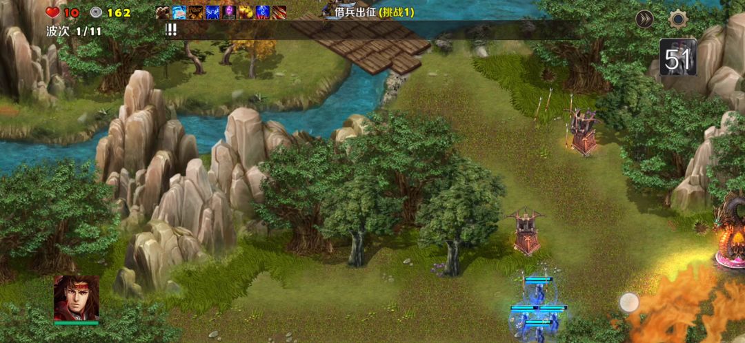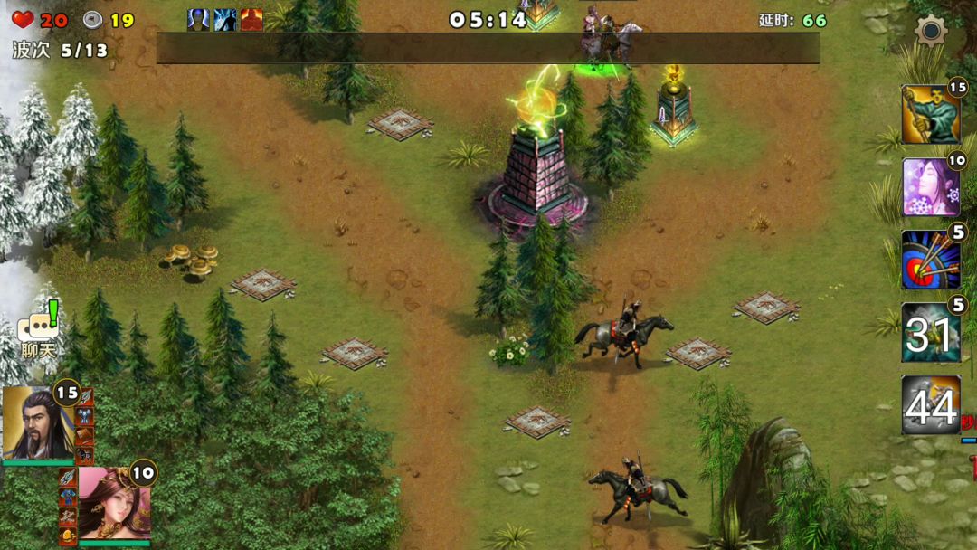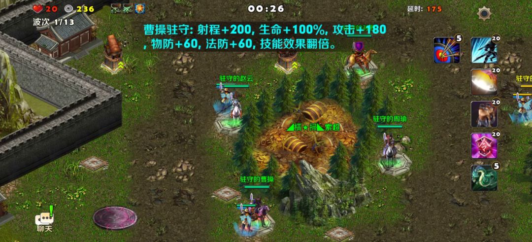 推荐英雄:周瑜(这个图最好用召唤系英雄)防御塔:天雷塔、粮仓(我是偷懒没有换,如果有粮仓金币来的也快一点打起来更加轻松)卡片出装:桃园结义、妙手回春、威震四方、破敌、术塔精通、引雷、攻城拔寨(又是一个需要拆塔才可以过关的图,毫不犹豫上攻城拔寨能够少点血就少点!)打法思路:战斗开始之前右路建造两个天雷塔升满技能周瑜也去右路守着清兵,家里唯一的粮仓金币技能点满(多造点粮仓)然后开始战斗。周瑜的技