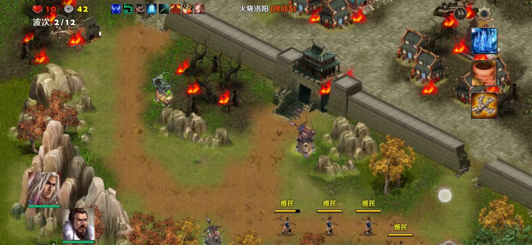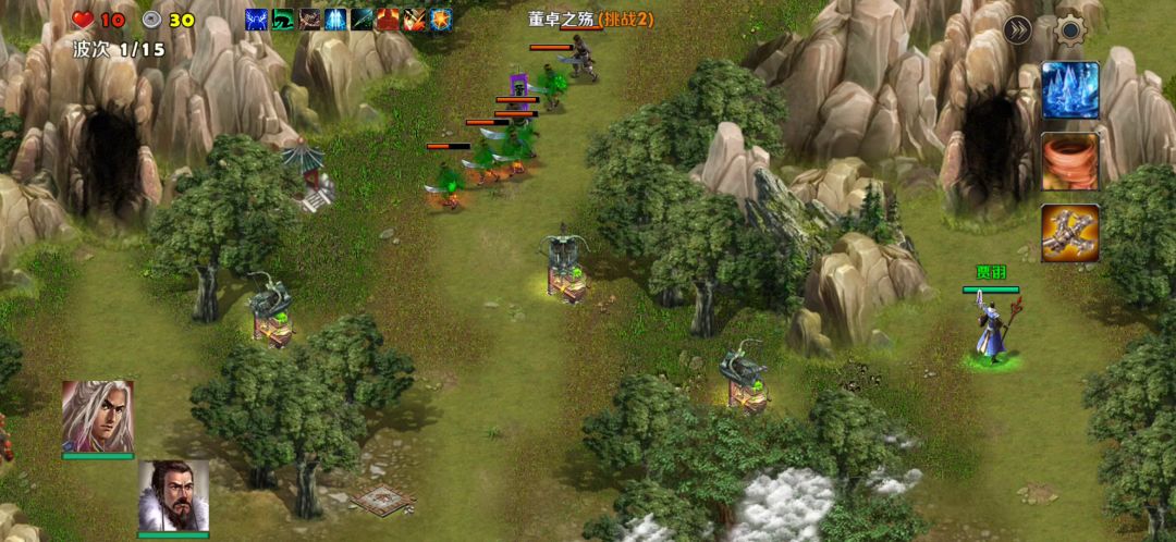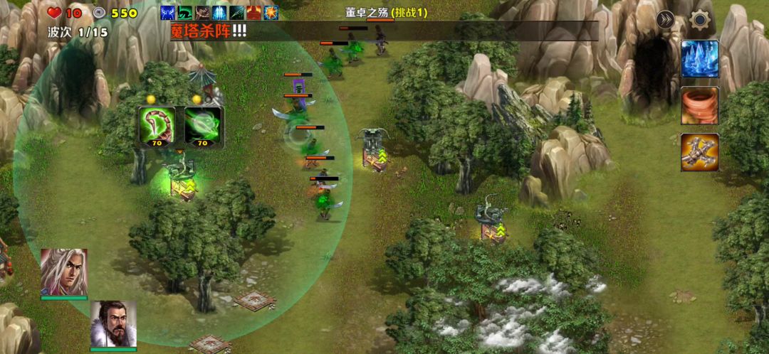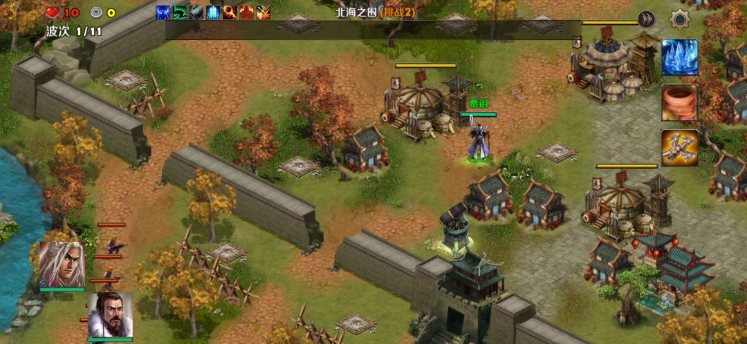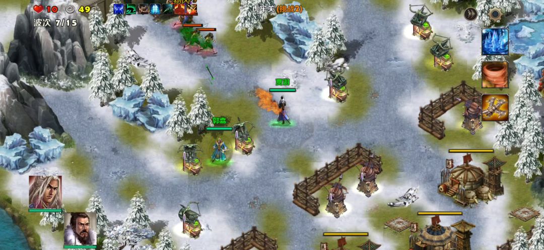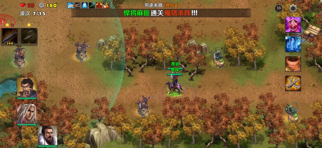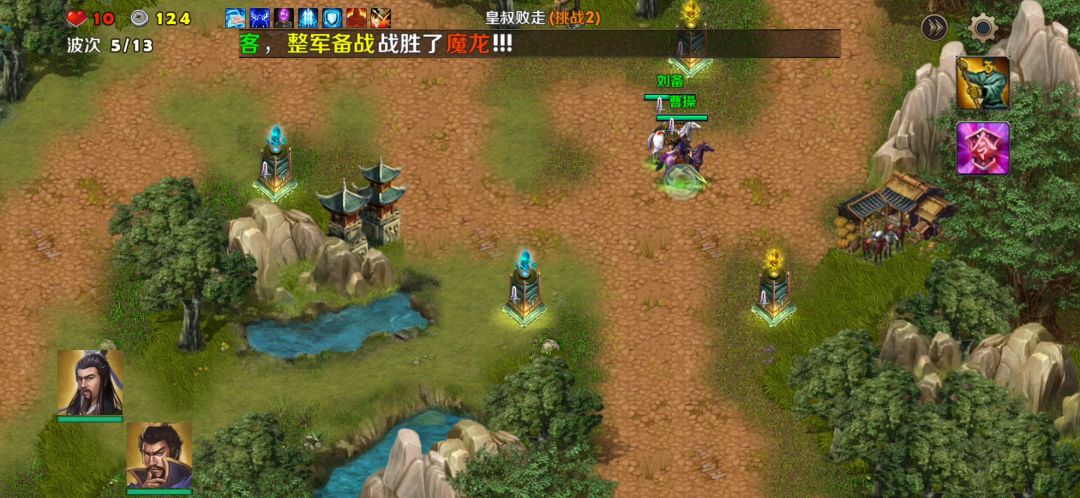 英雄:曹操、刘备塔:天雷塔、寒冰塔卡片:术塔精通、冻土、破敌、弱敌、地基加固