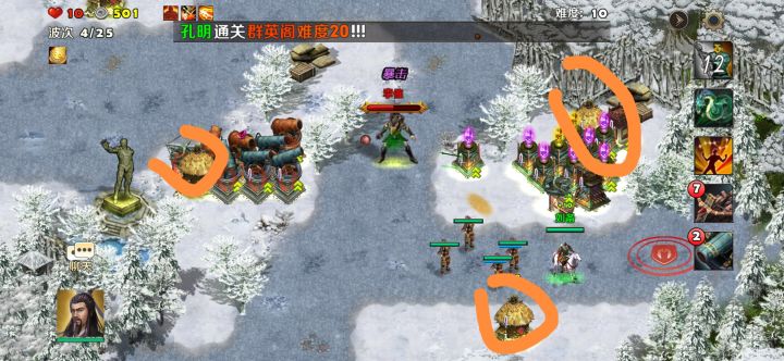 曹老板和刘备分别左右侧。张辽不上驻守,关羽上左前方驻守(尽量上暴击装),右前方按自己英雄来,先等级再看近远手。 带妙手回春、破敌、弱敌/破军、分秒必争、固若金汤。 地刺,毒塔(可不带)。 张辽上物防,带晕装。 第三波,第七波第,十一波有偷袭的骑兵需要回家守。 第八波正面会有一大群骑兵,关羽技能未必都能旋死,需要把地刺塔建好。 马岱和庞德尽量拖住。(马岱攻击对塔有效,及时建塔)。可建毒塔。 马超尽量用召唤兵拖在栅栏前,韩遂身边的骑兵注意一下,及时清理,会绕过基地(有几率),一个骑兵扣两点红心。剩下就是尽量拖,放风筝硬耗。 最后:祝愿大家早日三星通过,拿上马超,去竞技场炸鱼。