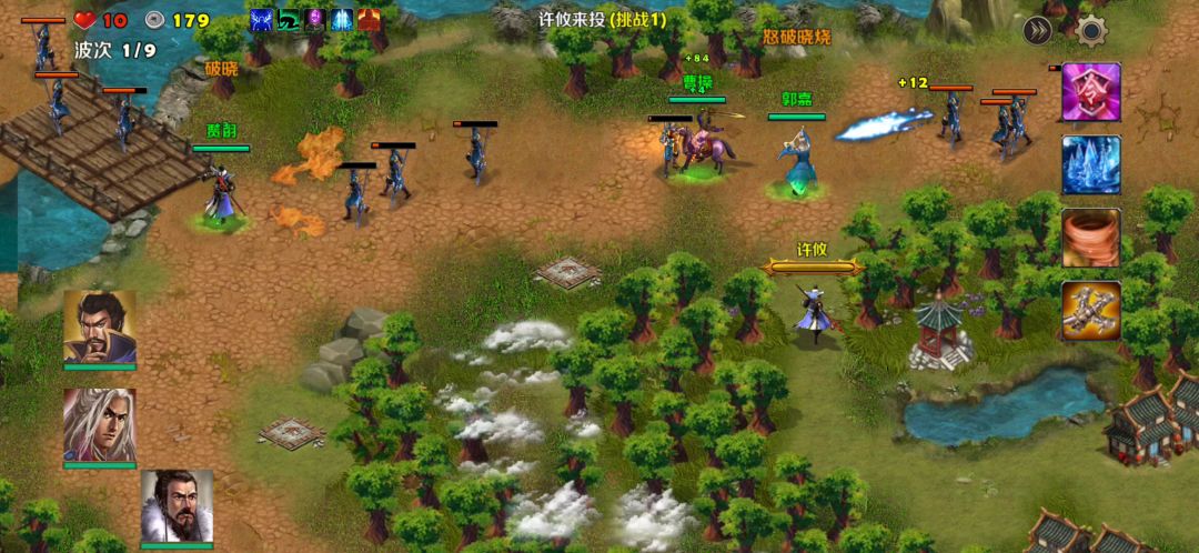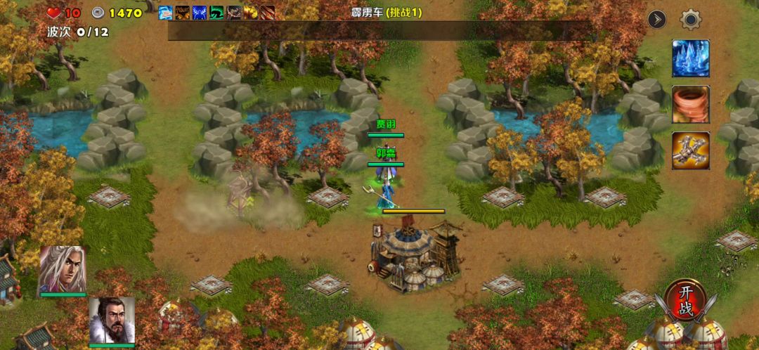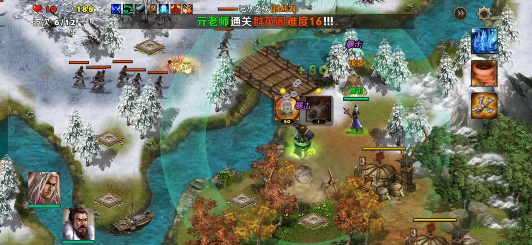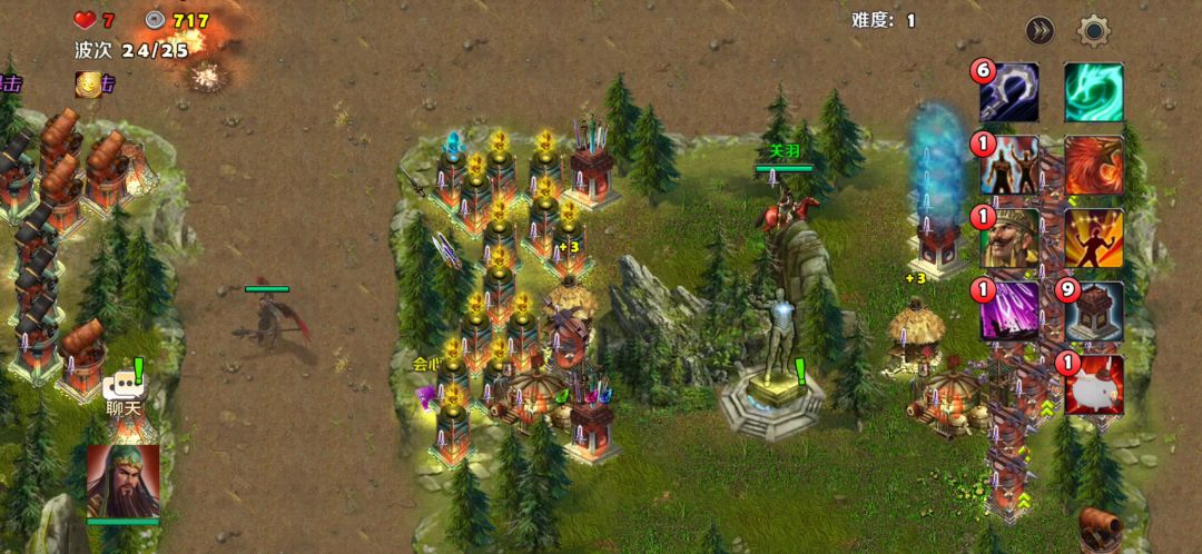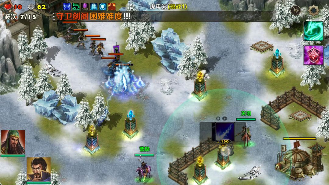 英雄:关羽援助:朱雀、阻挡卡片:选择术塔、狙击箭塔、炮塔加成